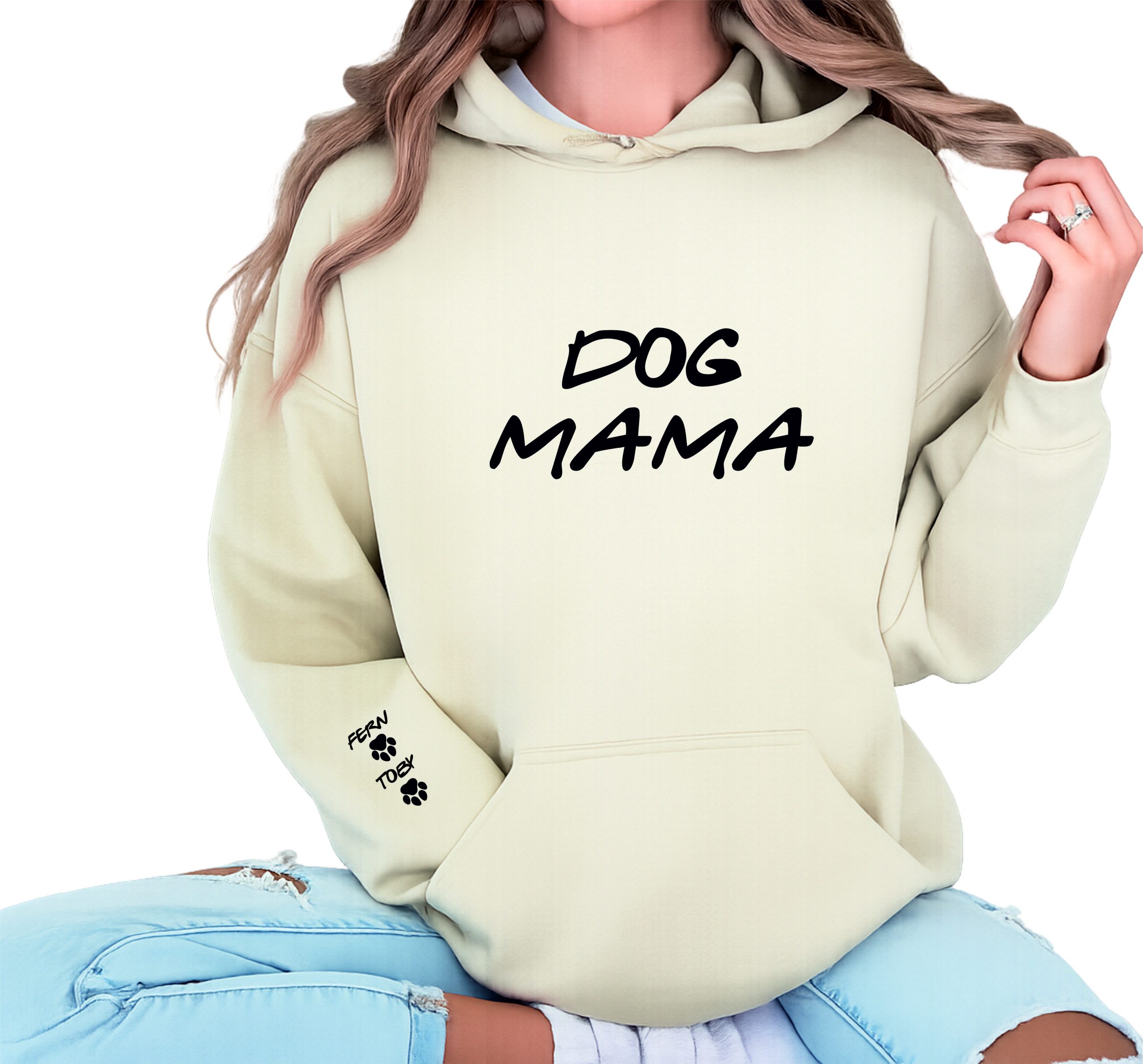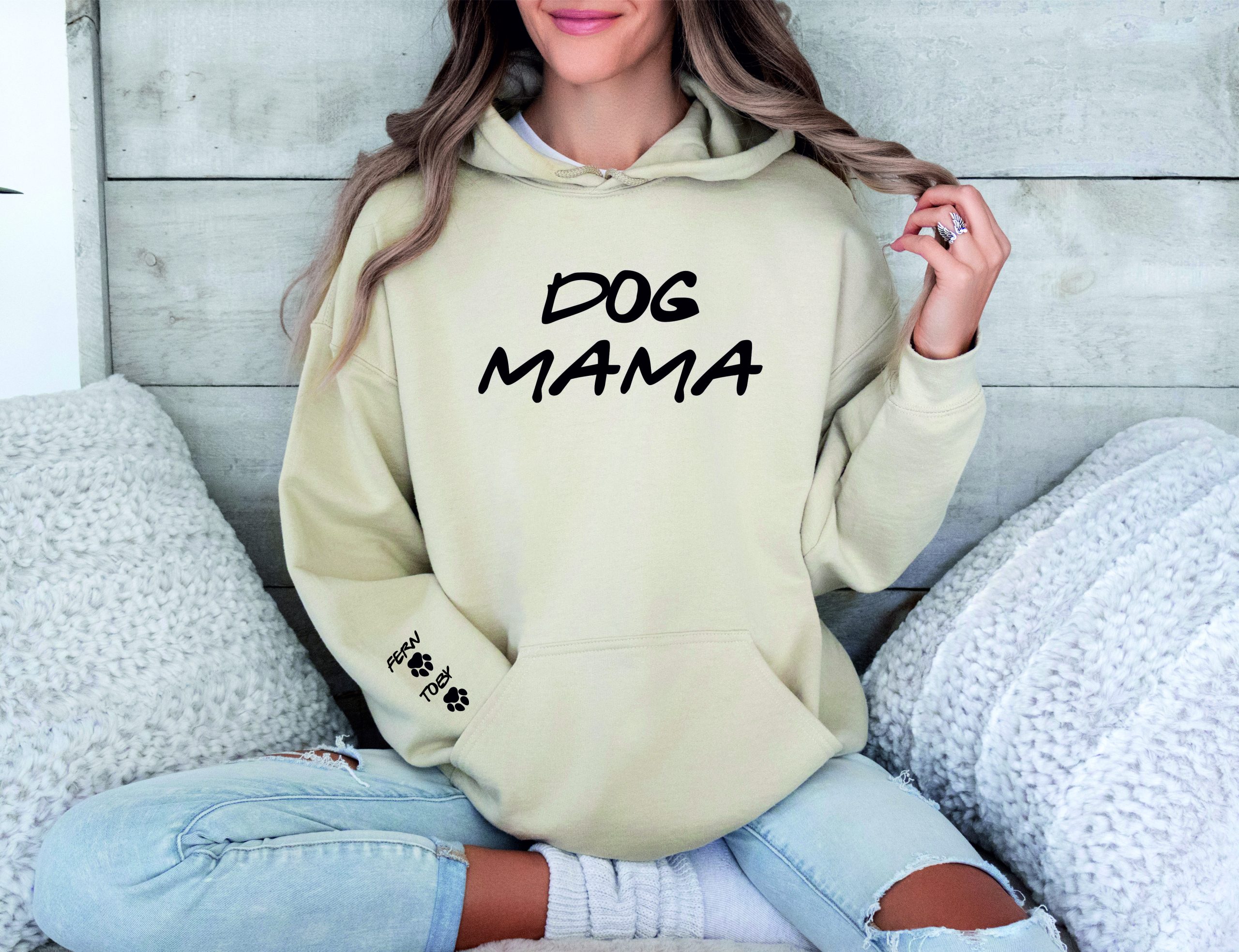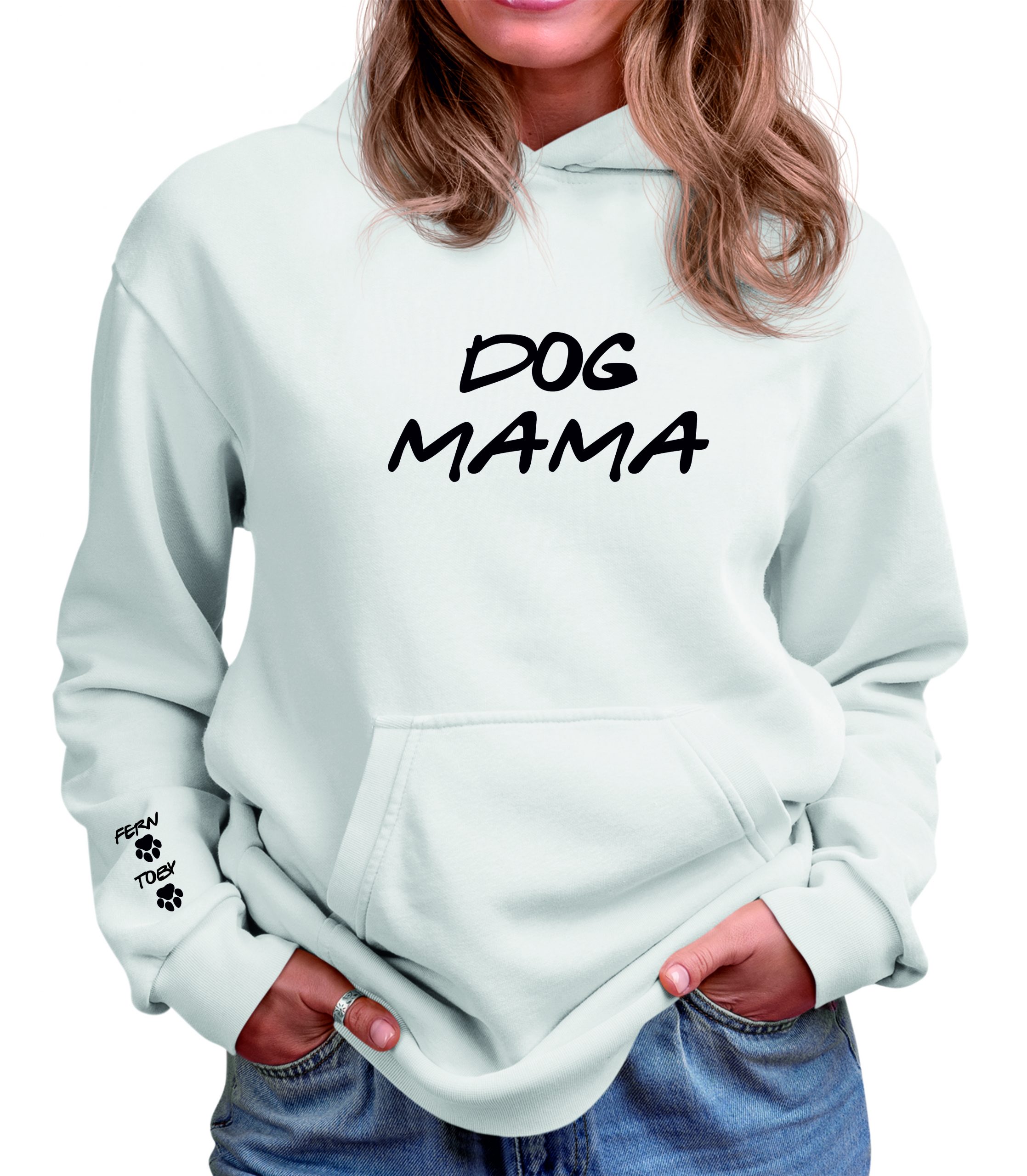 Introducing a custom printed Mama Hoodie – Dog Mama hoodie made here in our workshop in Yorkshire, perfect for any occasion. This unisex adults pullover hoodie is made with high-quality materials and comes in a regular size type. The design features a special touch with names and paws printed on the sleeve. This hoodie is perfect for activewear and makes for a great addition to any wardrobe and would be a great gift for any occasion whether it is Mother’s Day, Birthday or just as a special gift to say Thank You.  Get yours today and let everyone know that you’re a proud Dog Mama!!