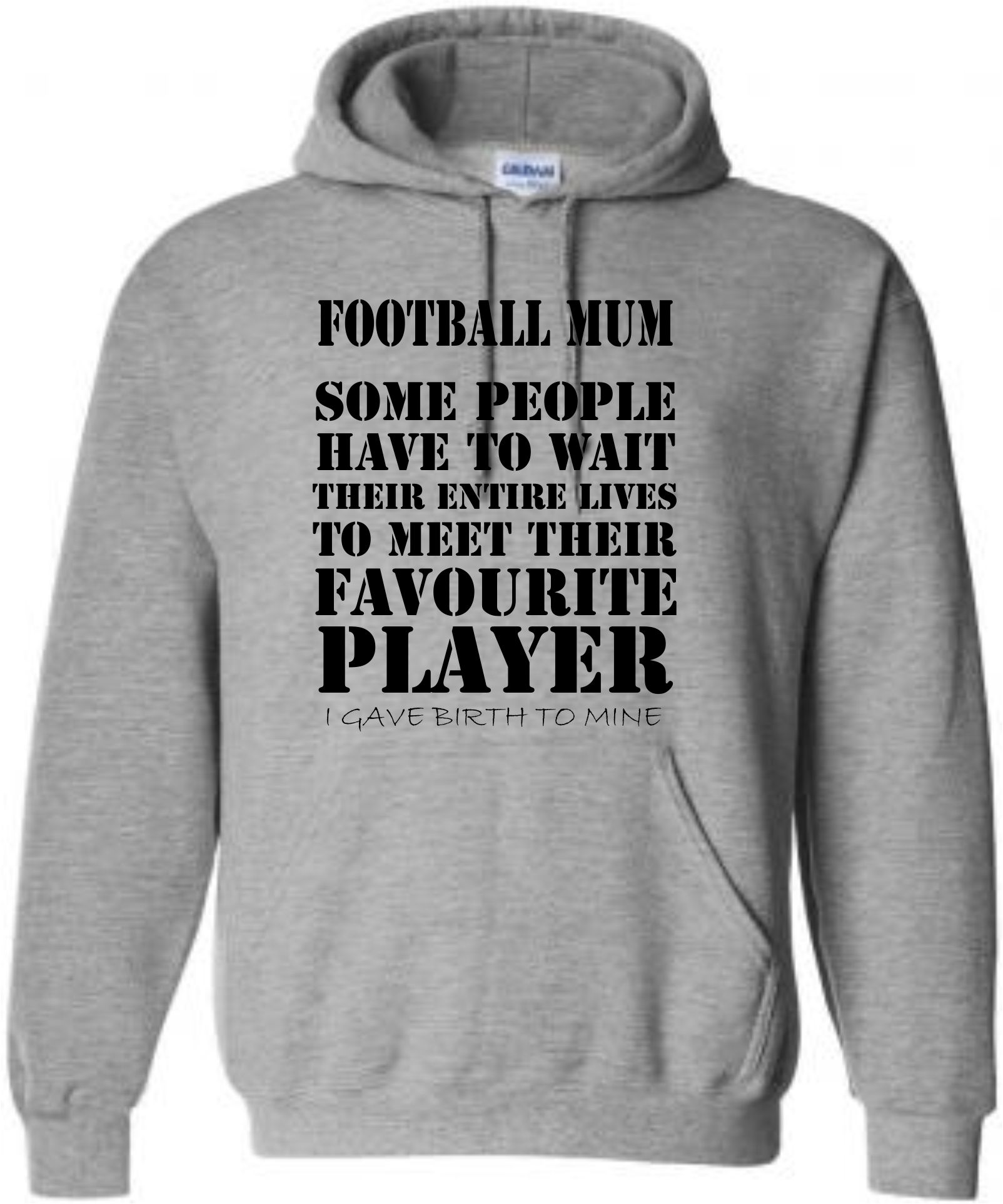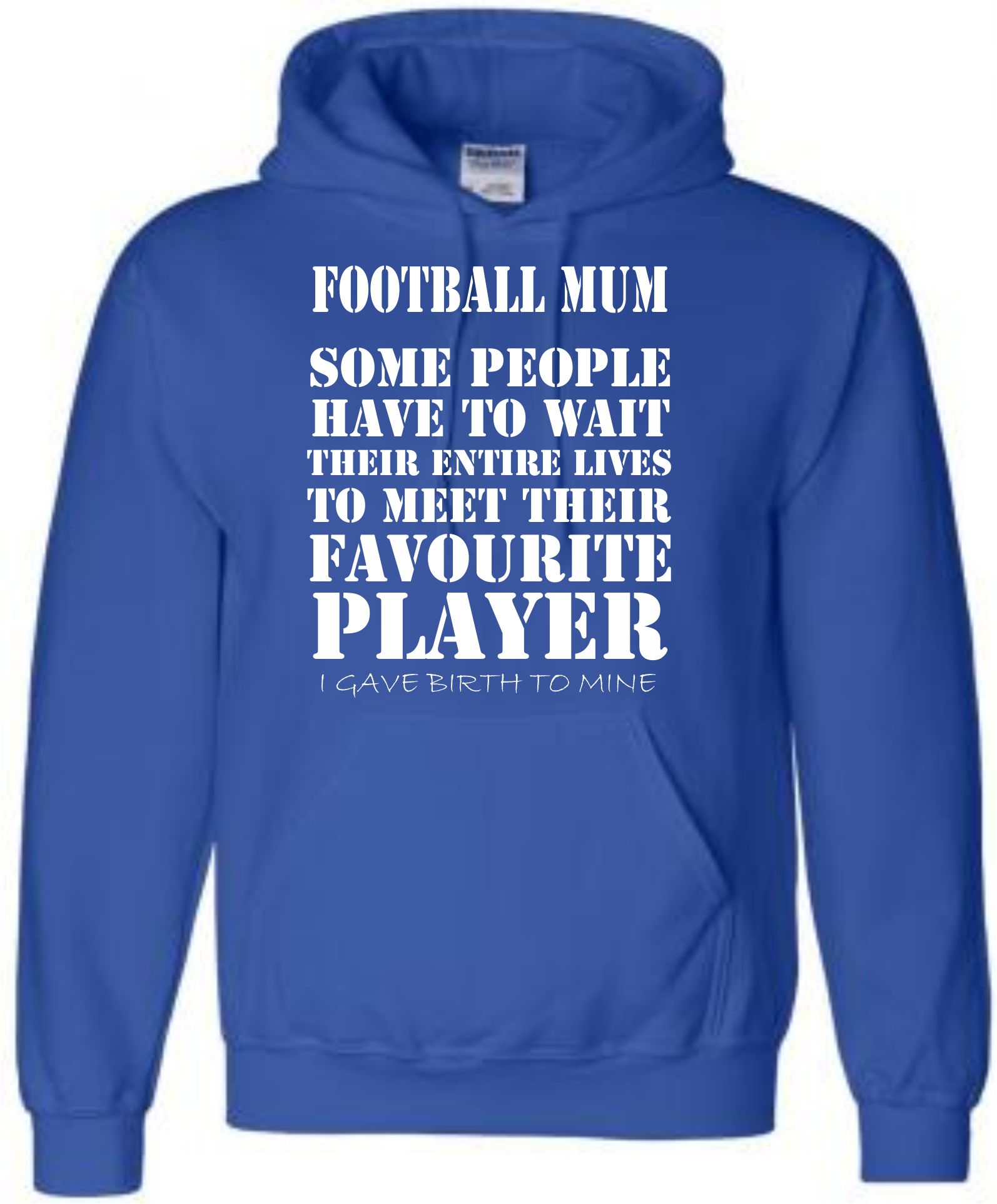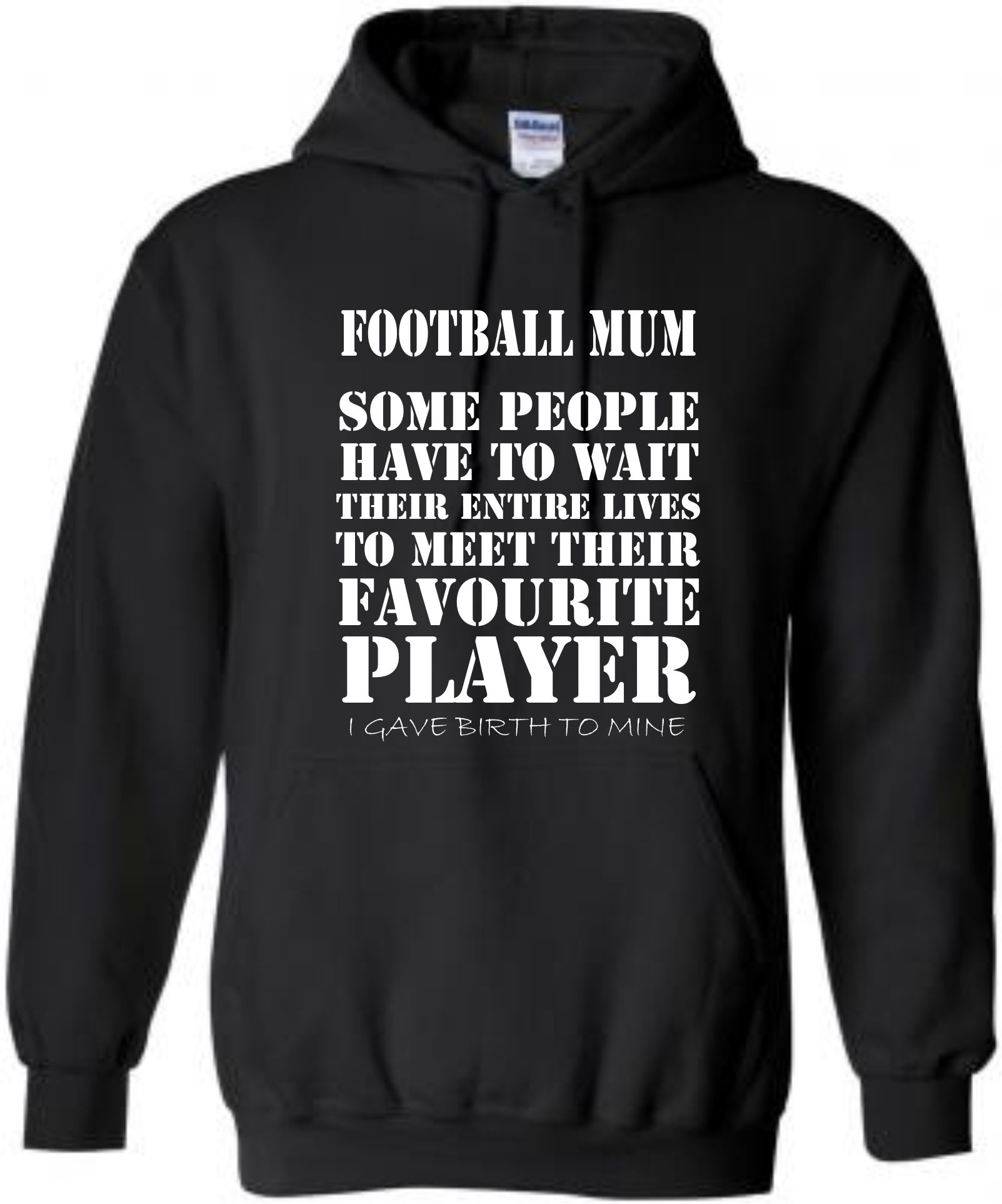 This is our pre-designed Football Mum – Some People Have to Wait Their Entire Life to Meet Their Favourite Player – I Gave Birth to Mine, Unisex Hoodie