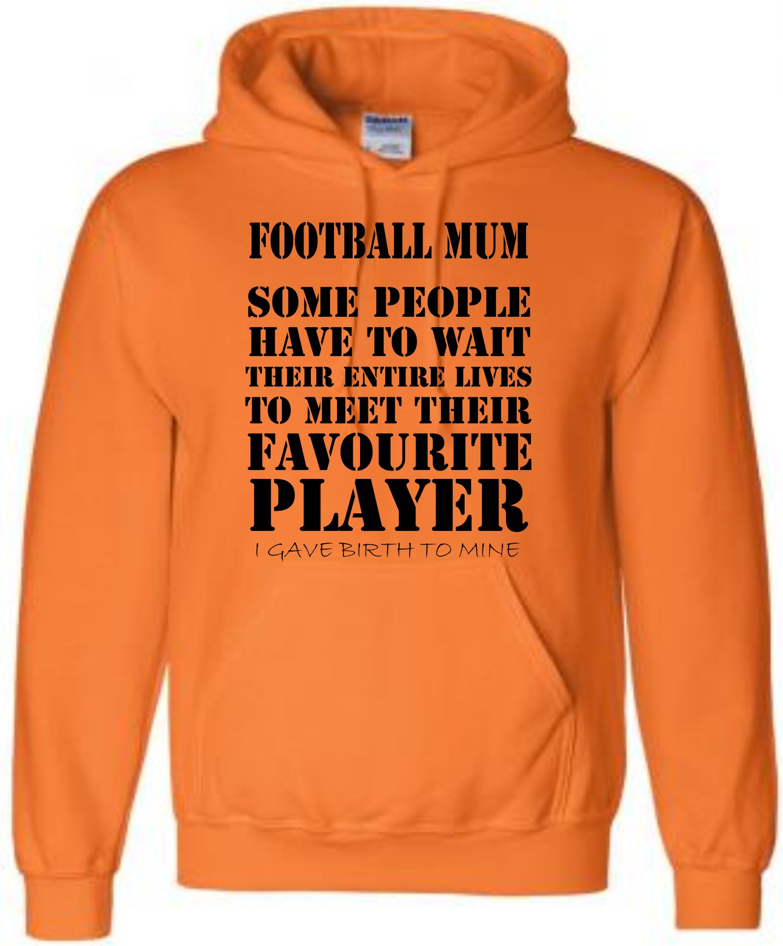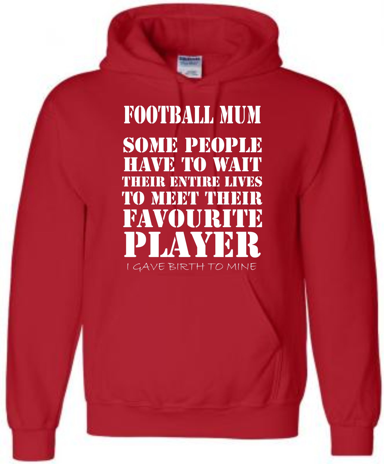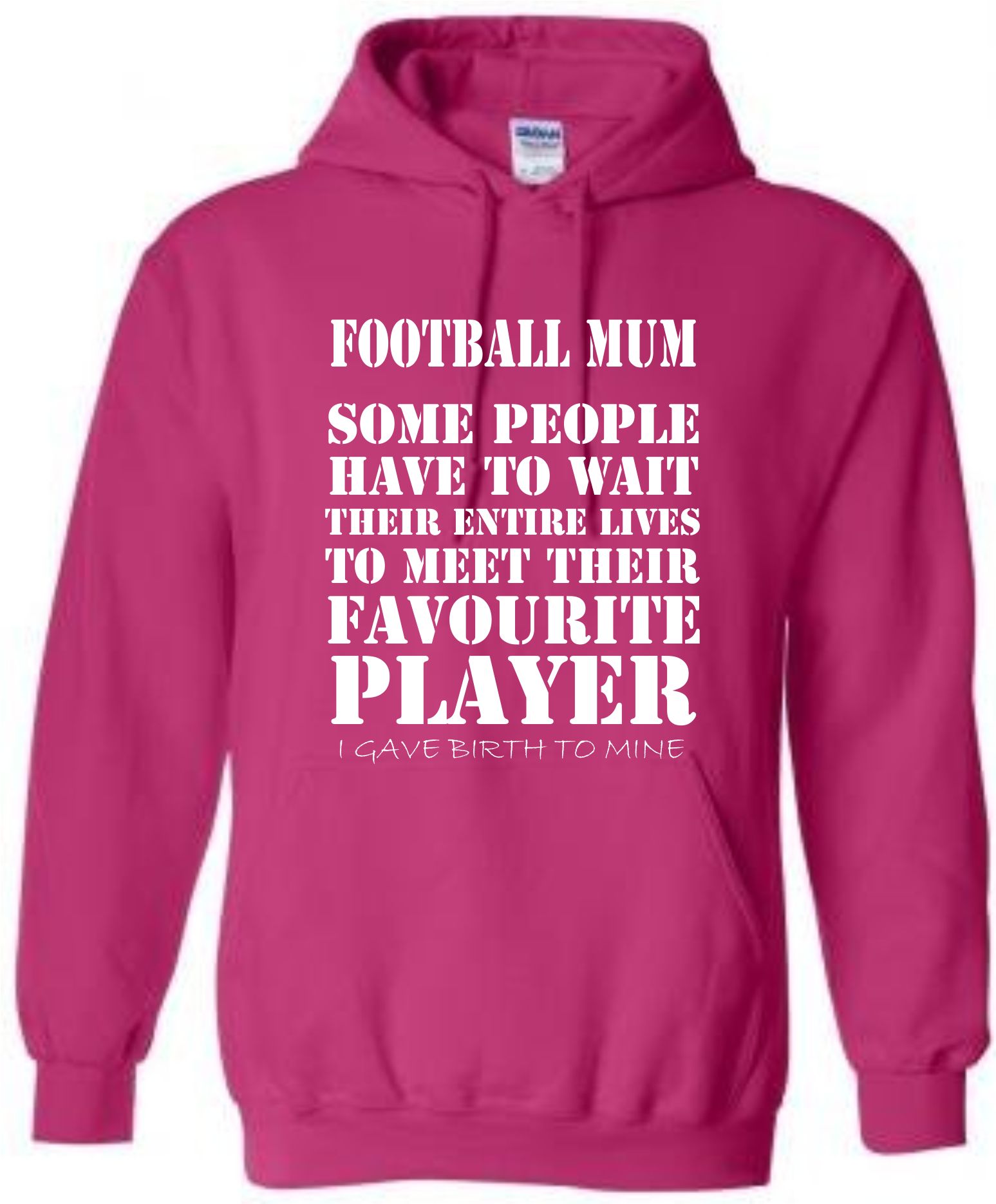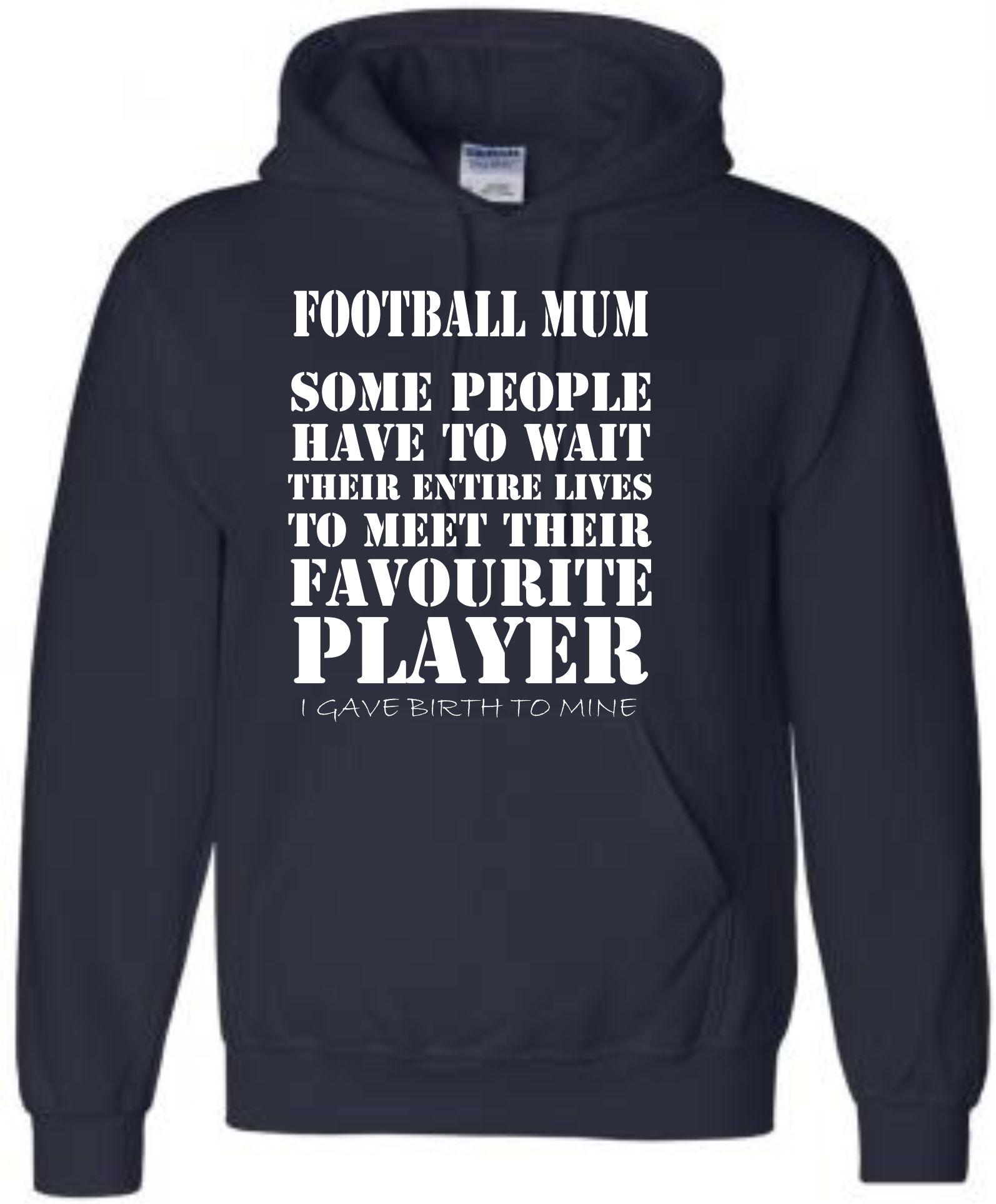 This is our pre-designed Football Mum – Some People Have to Wait Their Entire Life to Meet Their Favourite Player – I Gave Birth to Mine, Unisex Hoodie