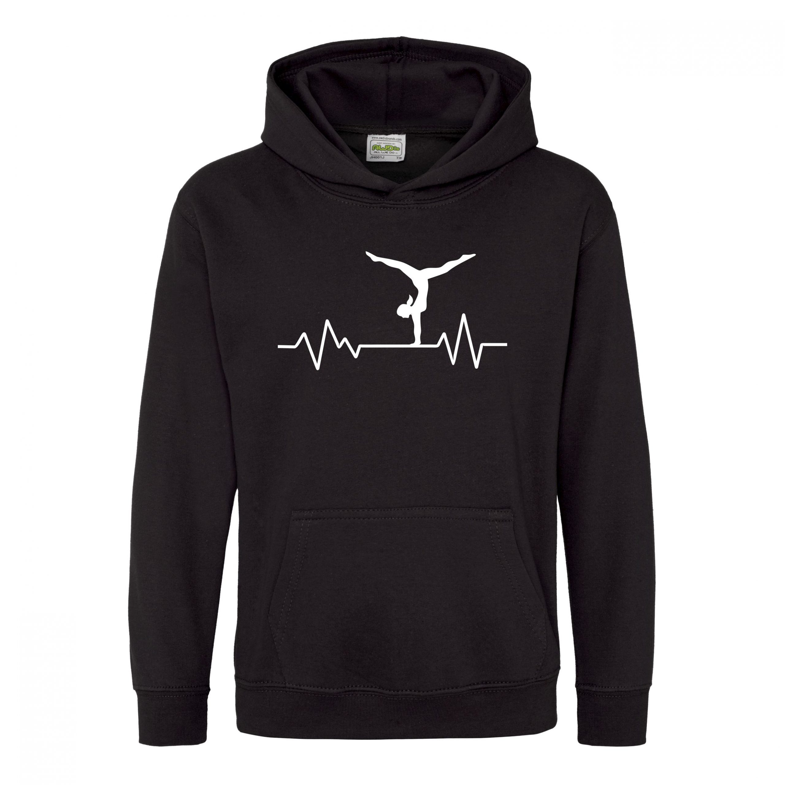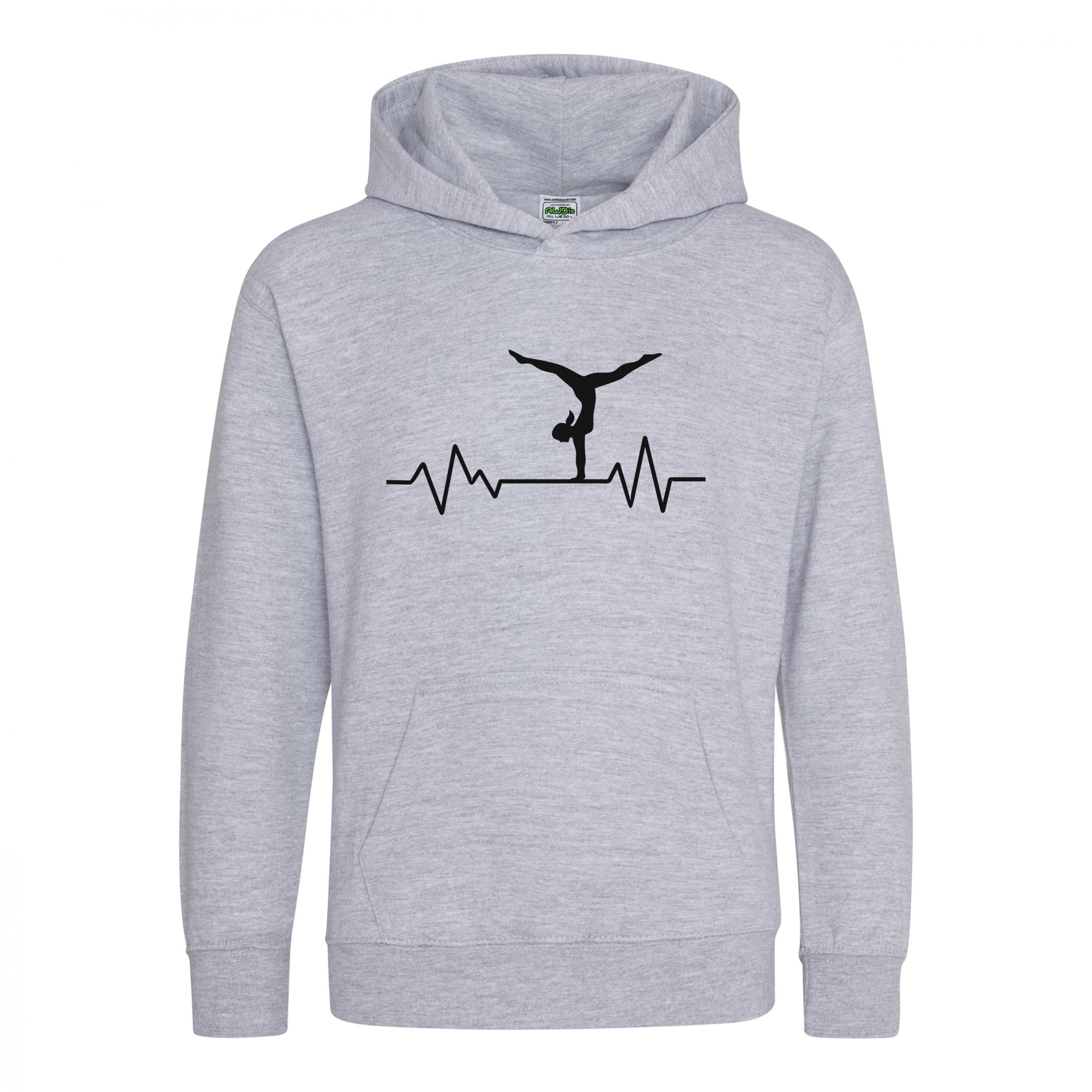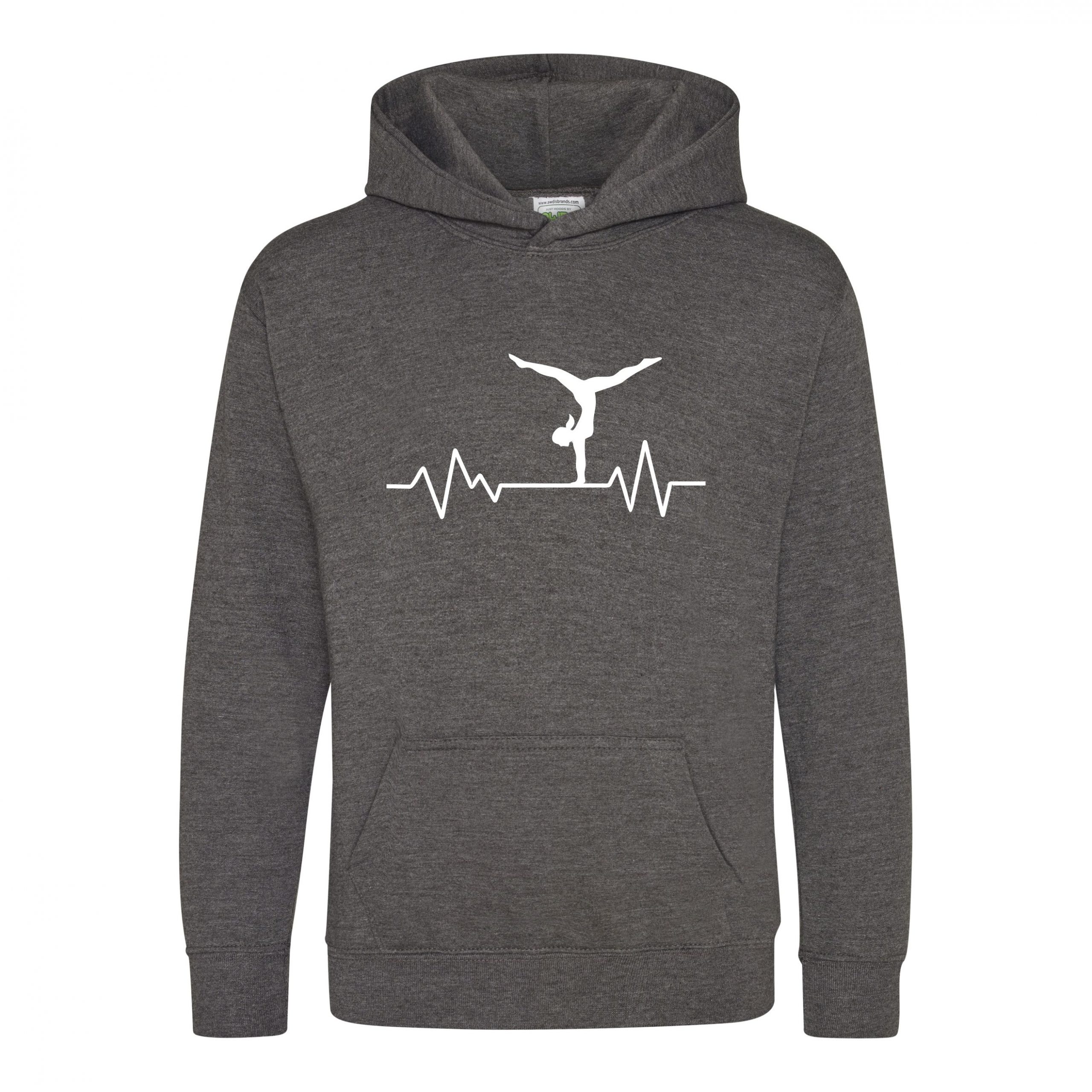 This is our funny Kids Heartbeat Gymnast hoodie which is just one of our fantastic designs professionally printed onto a high quality Kids hoodie.