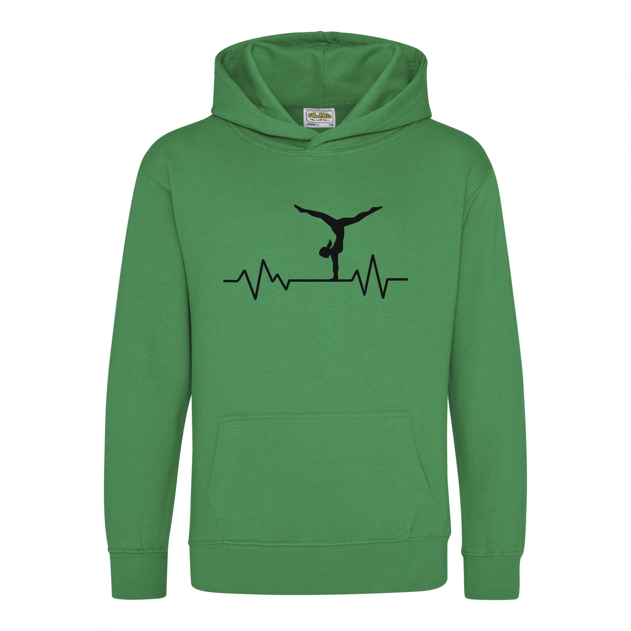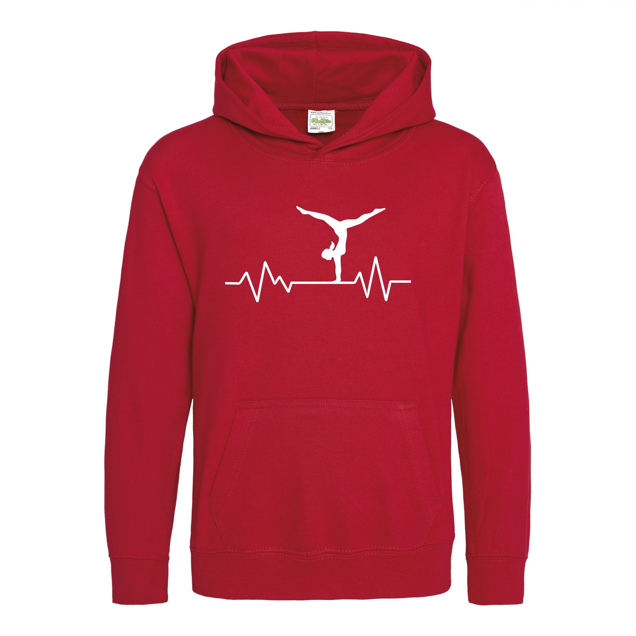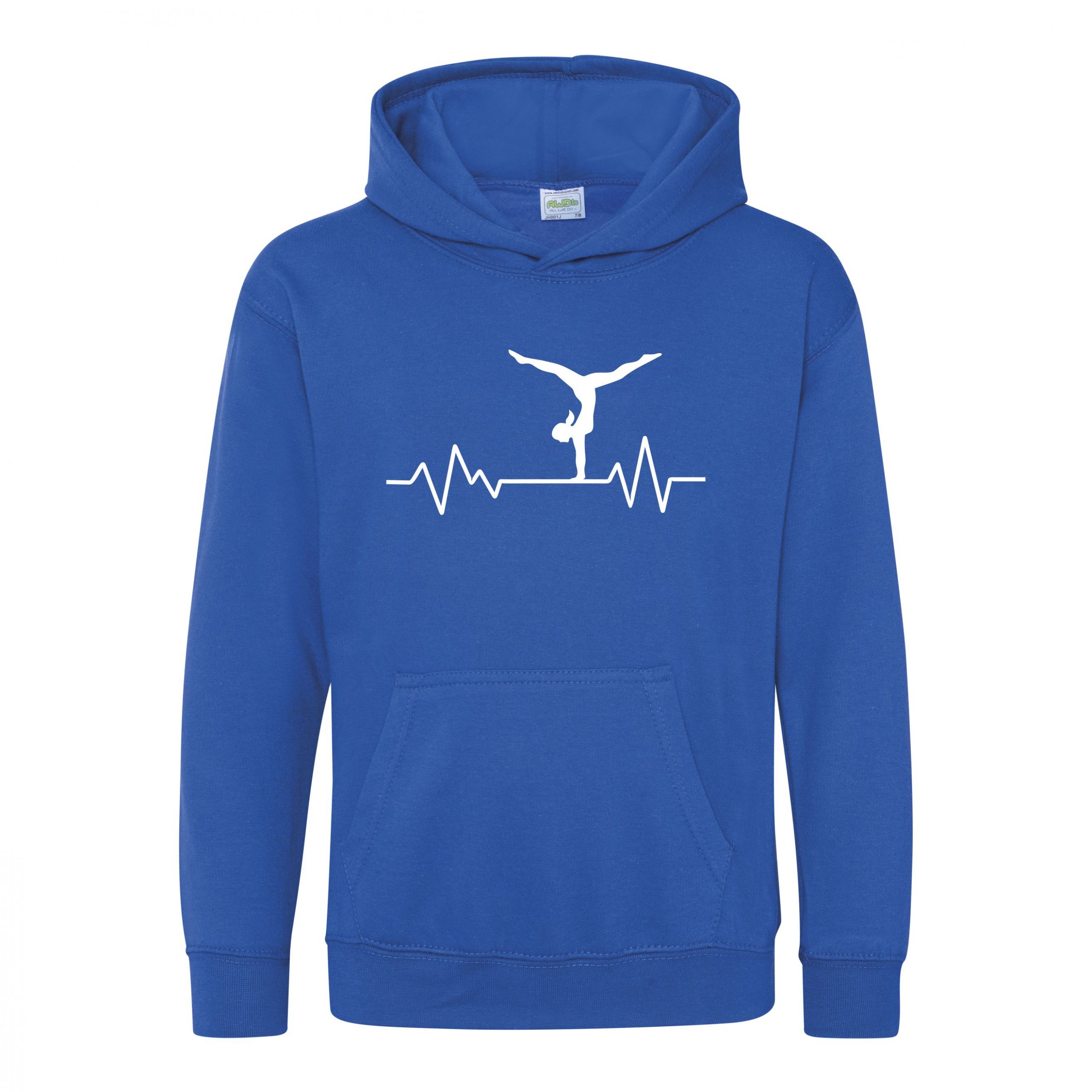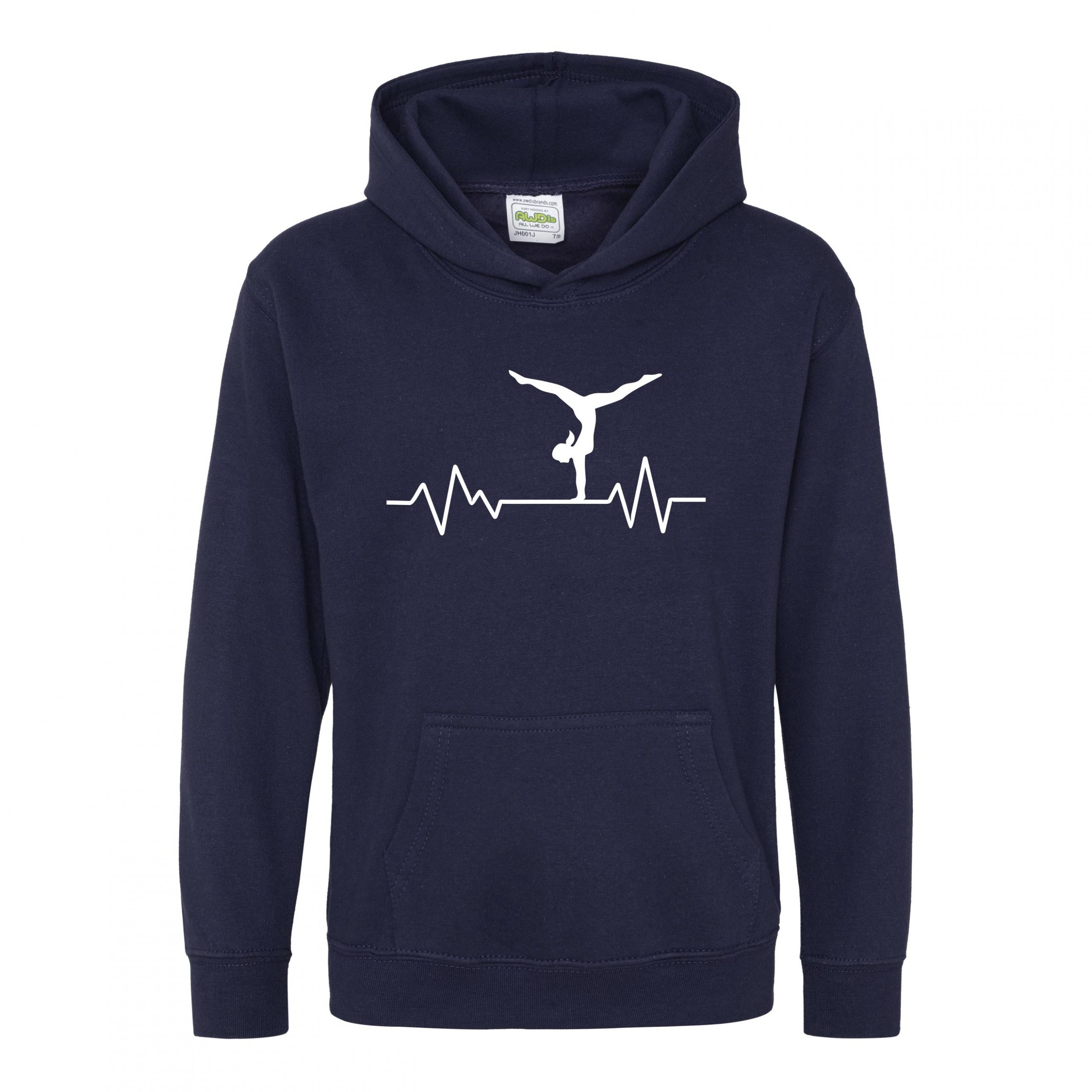 This is our funny Kids Heartbeat Gymnast hoodie which is just one of our fantastic designs professionally printed onto a high quality Kids hoodie.