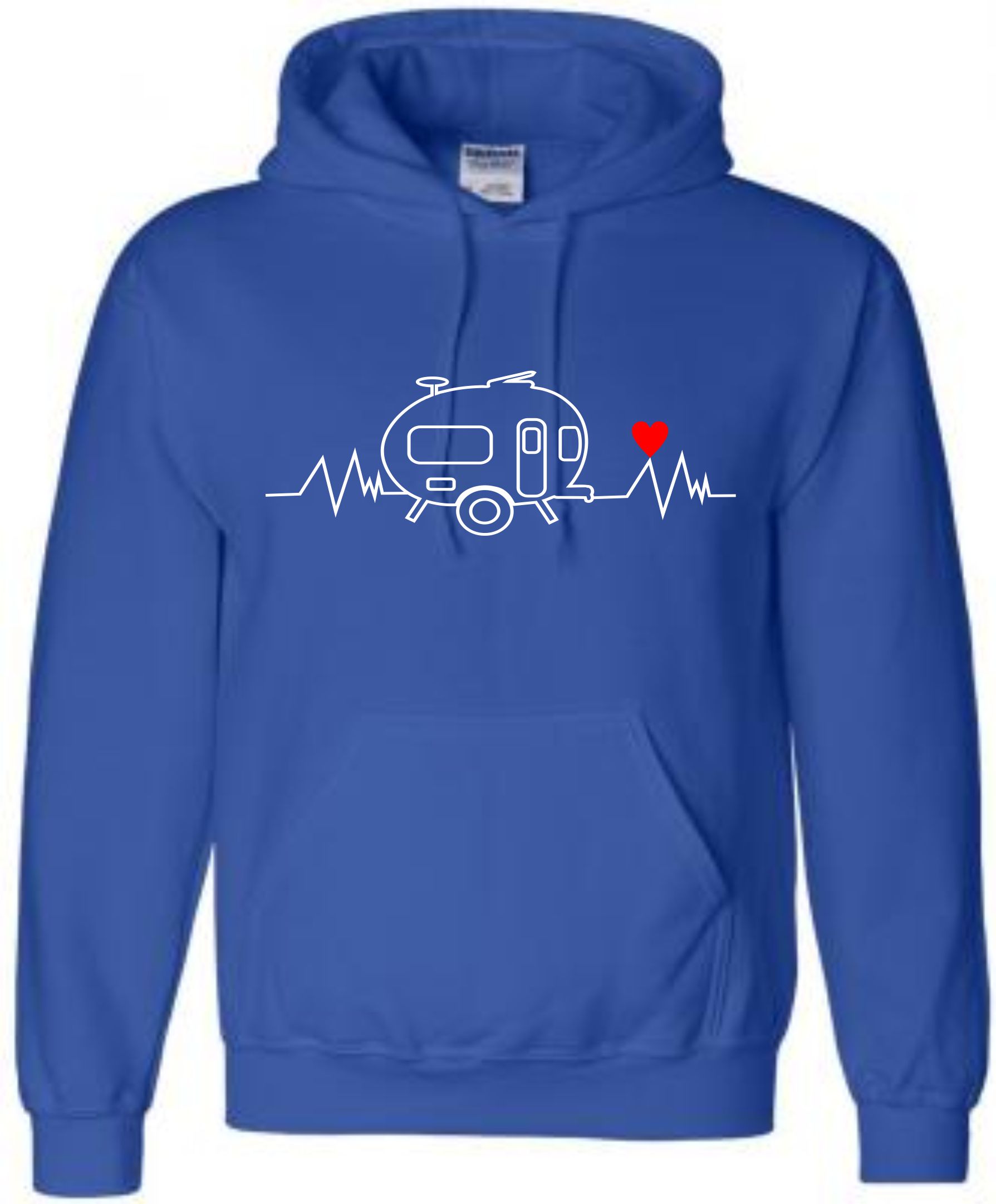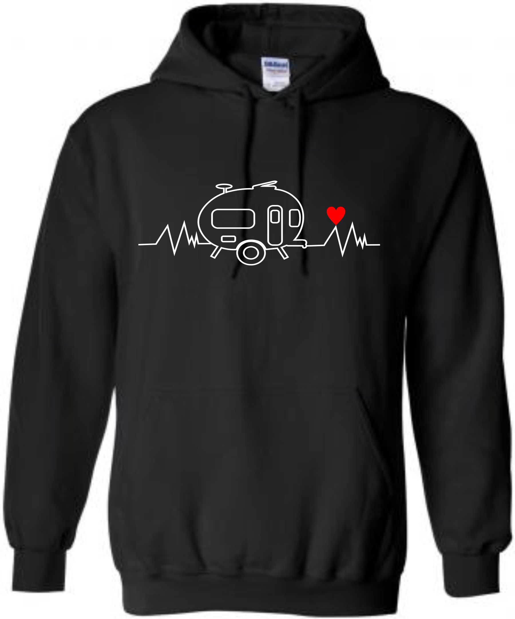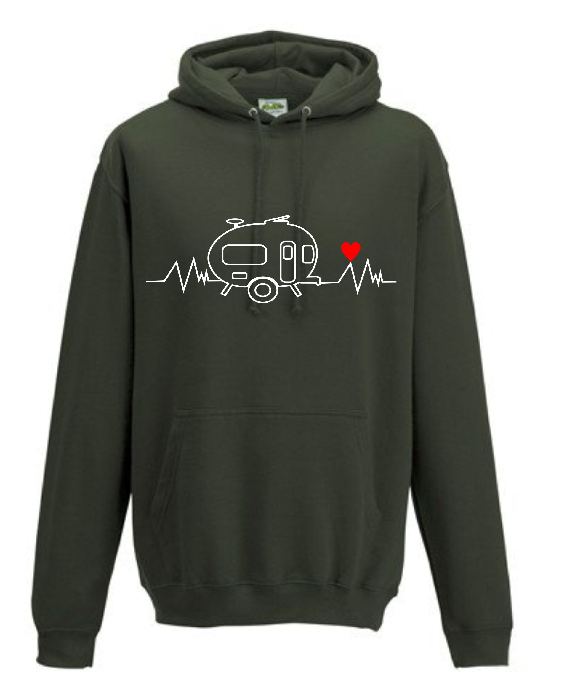 This is our pre-designed Heartbeat Retro Caravan Hoodie which is just one of our fantastic designs professionally printed onto a high quality hoodie.