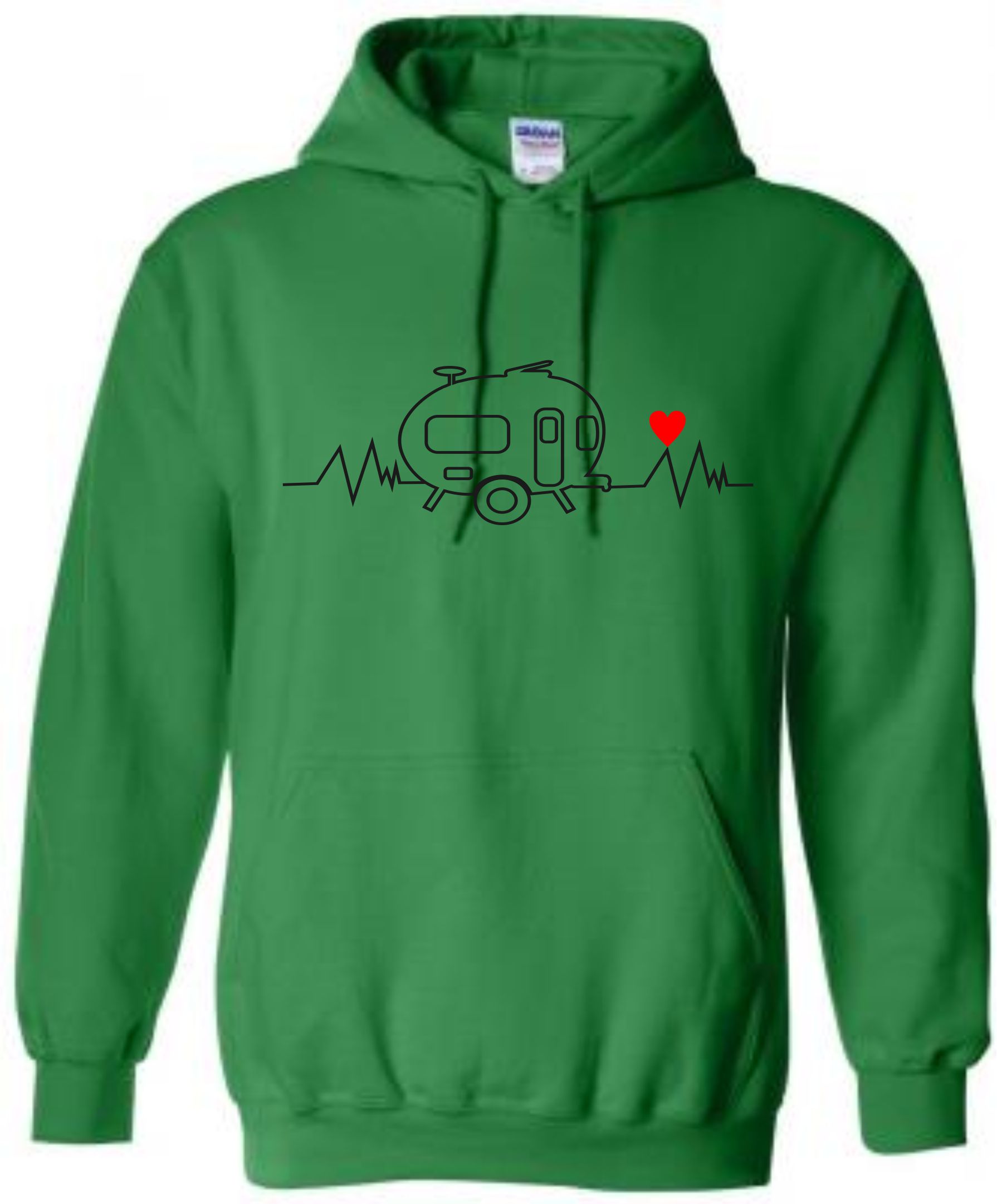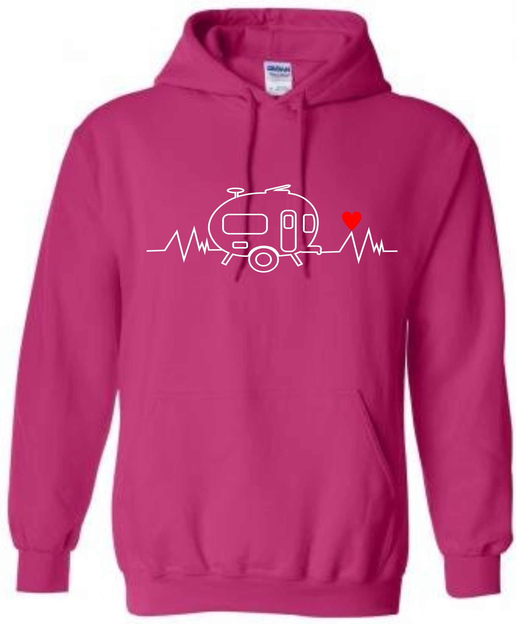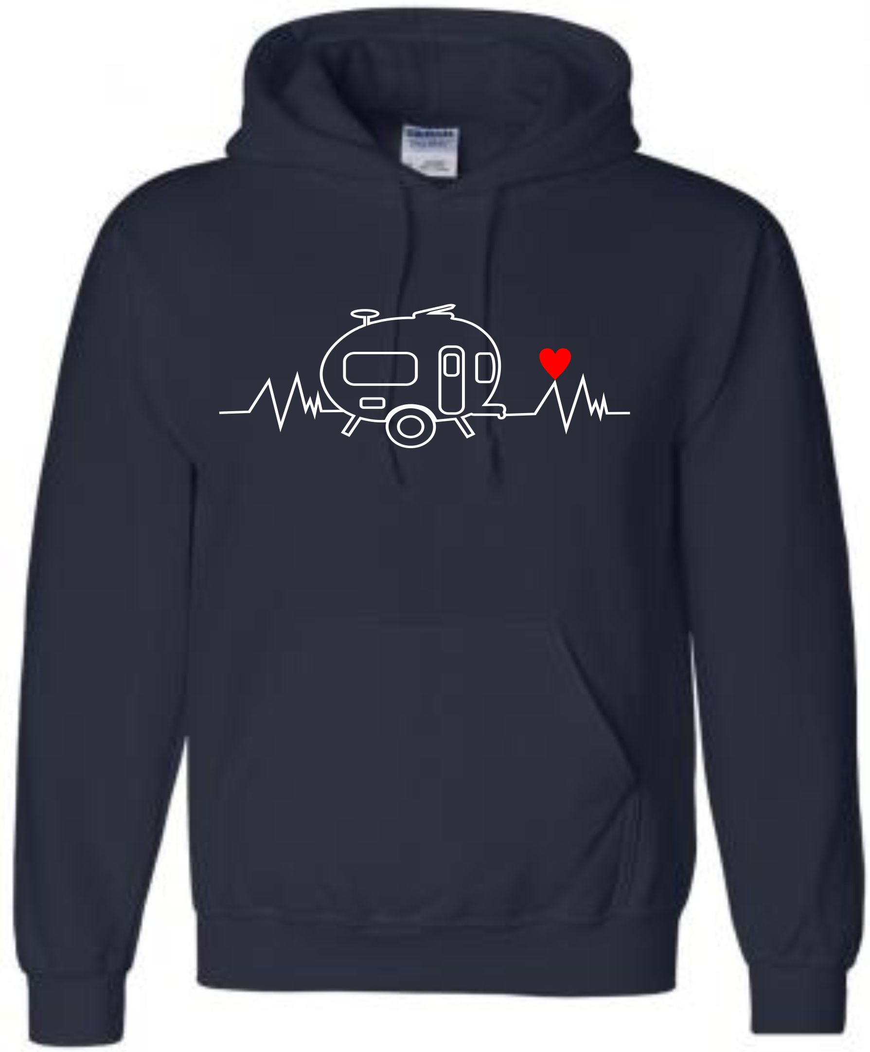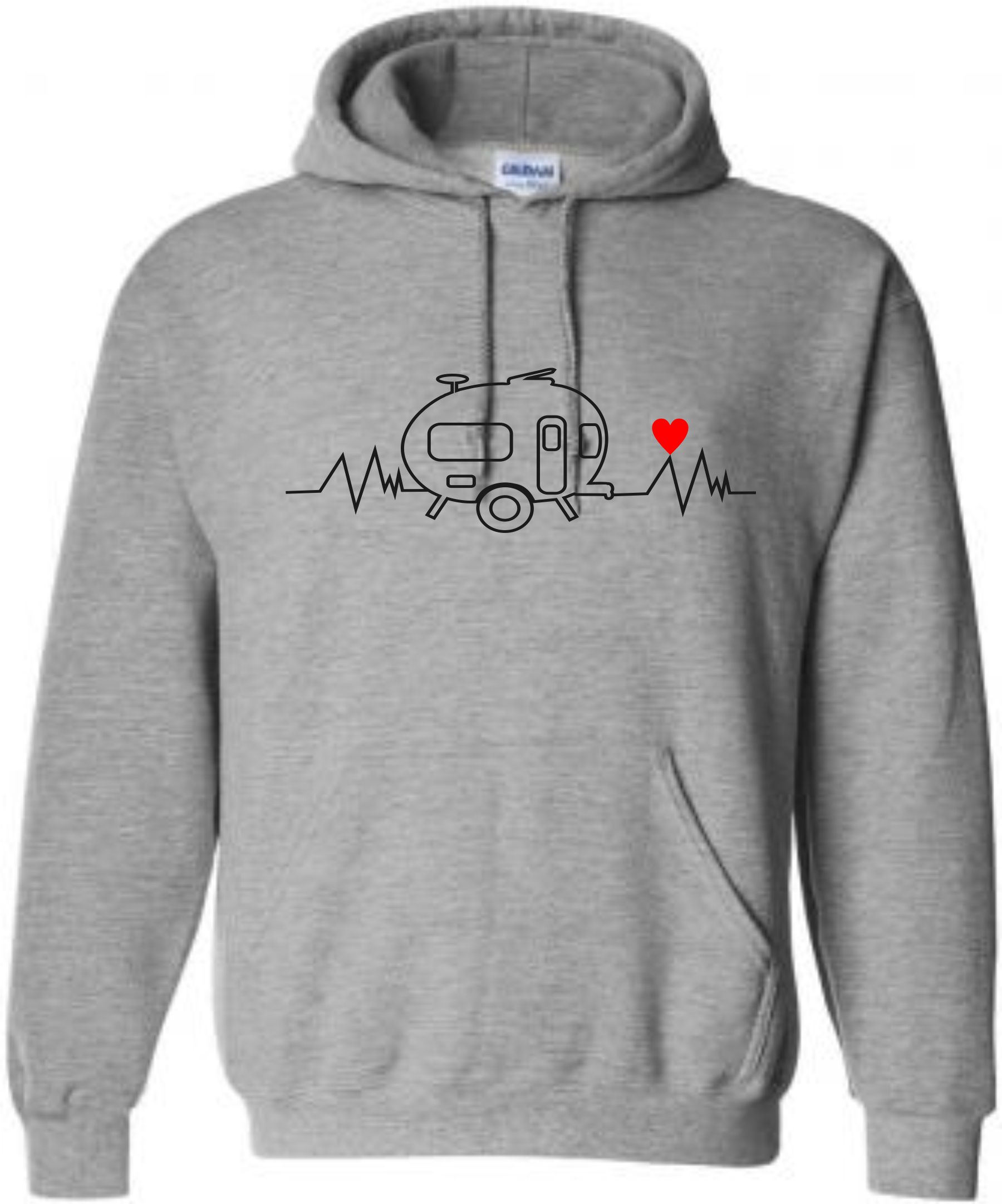 This is our pre-designed Heartbeat Retro Caravan Hoodie which is just one of our fantastic designs professionally printed onto a high quality hoodie.