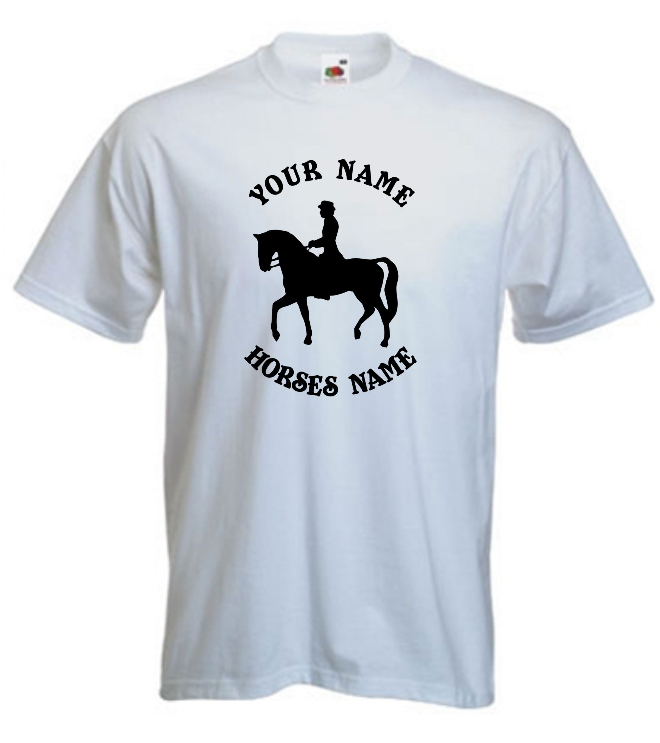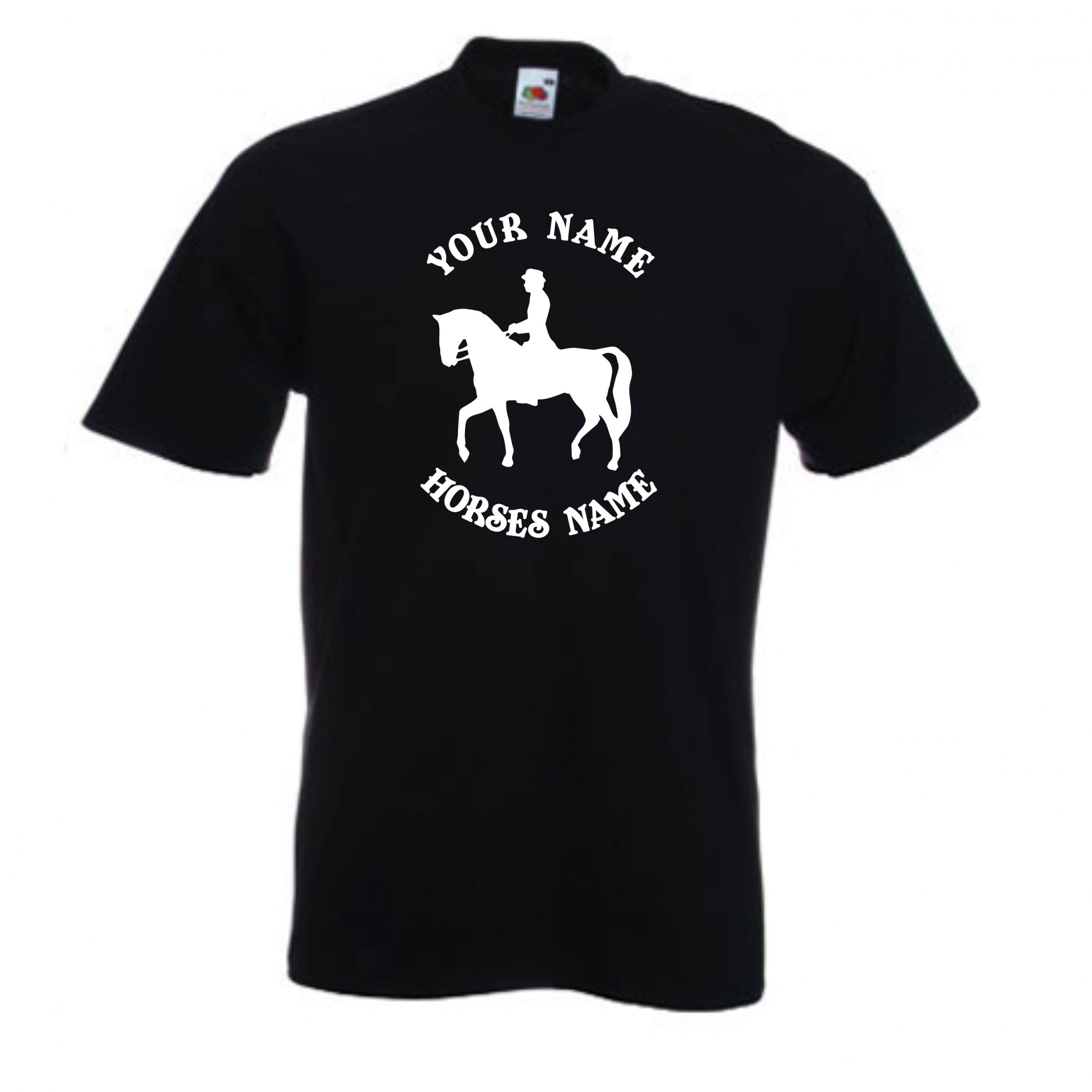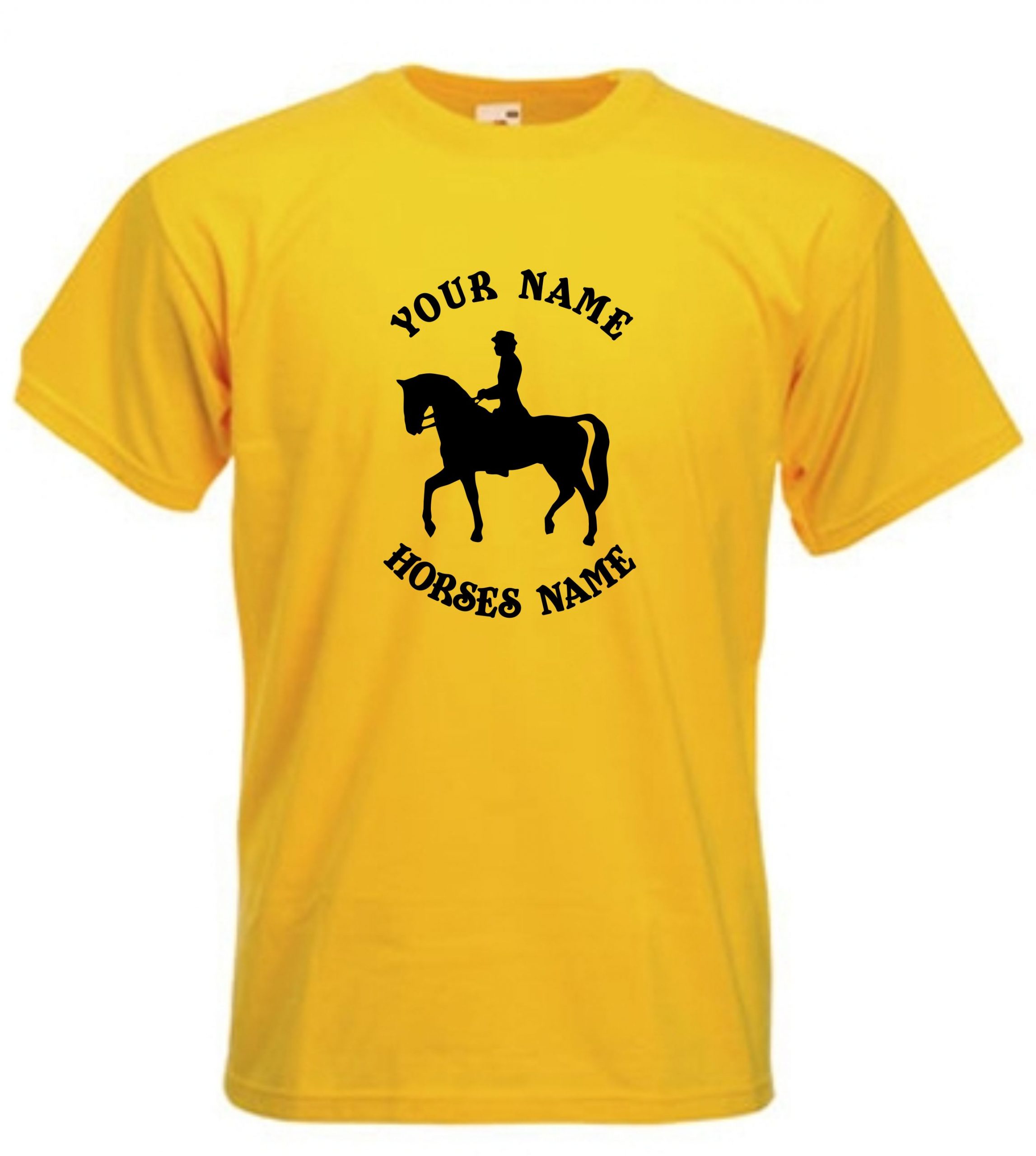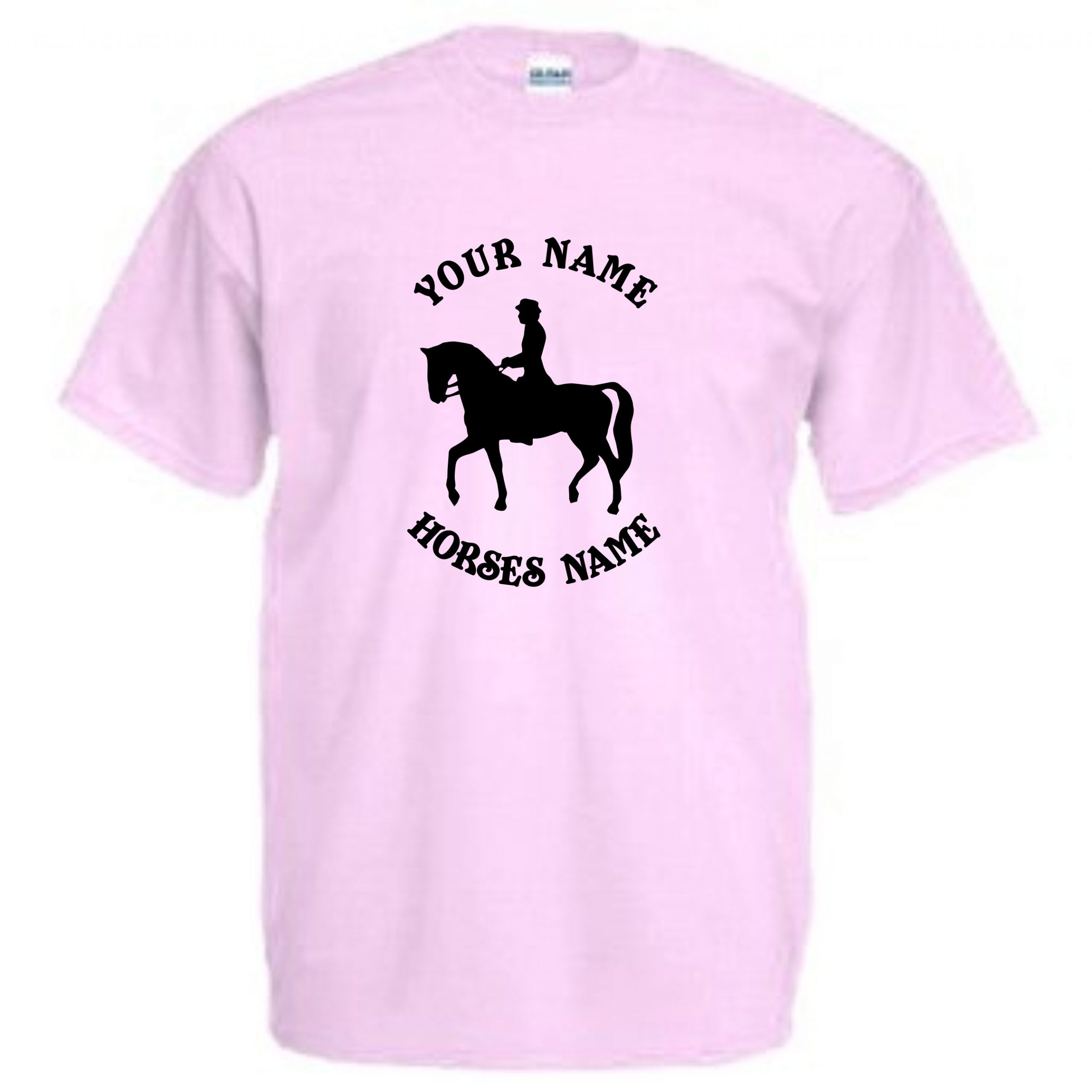 This is our Kids Horse Dressage Riding T-Shirt that can be personalised by adding the riders and horses names and would be a great gift for any horse lover.