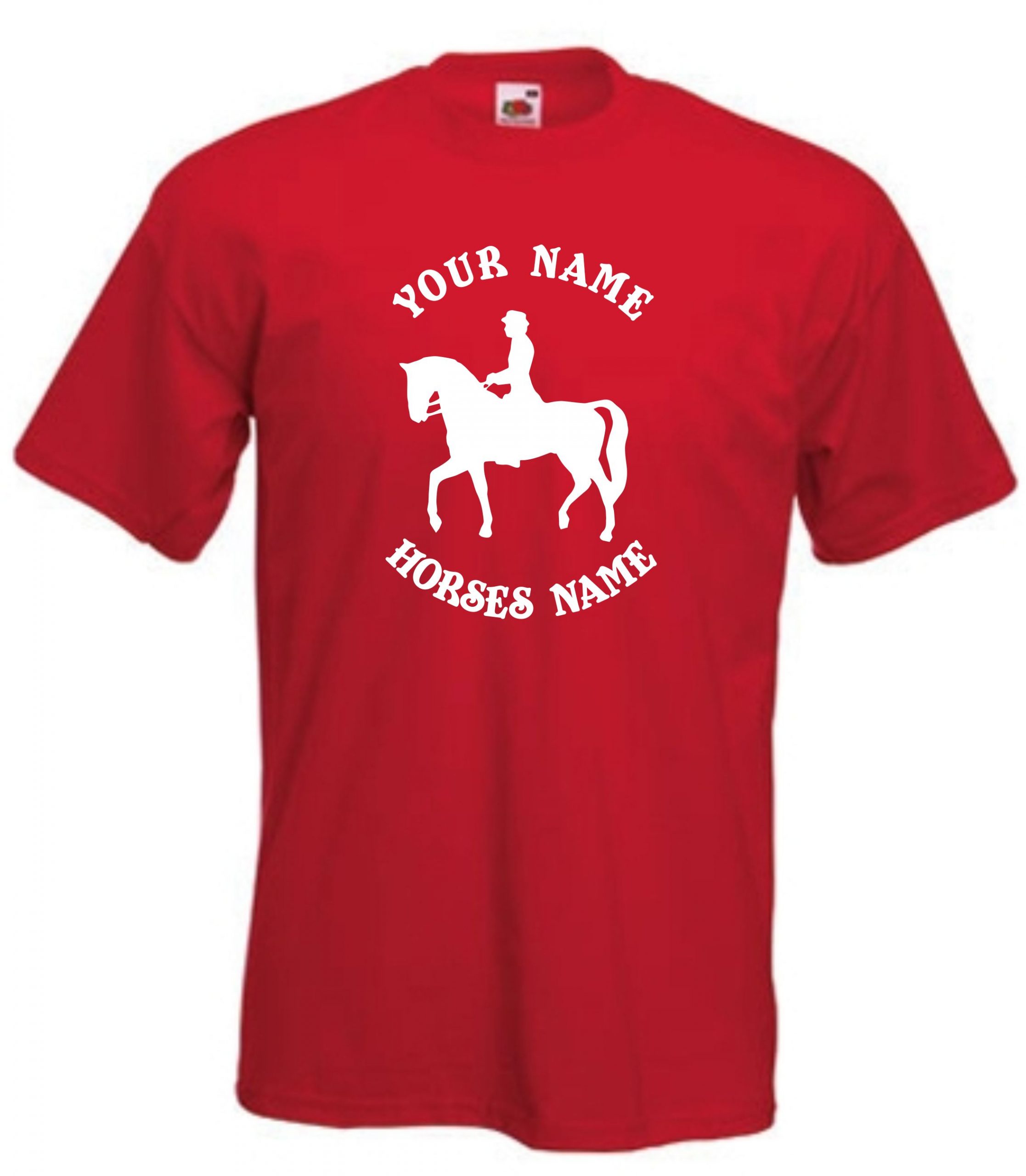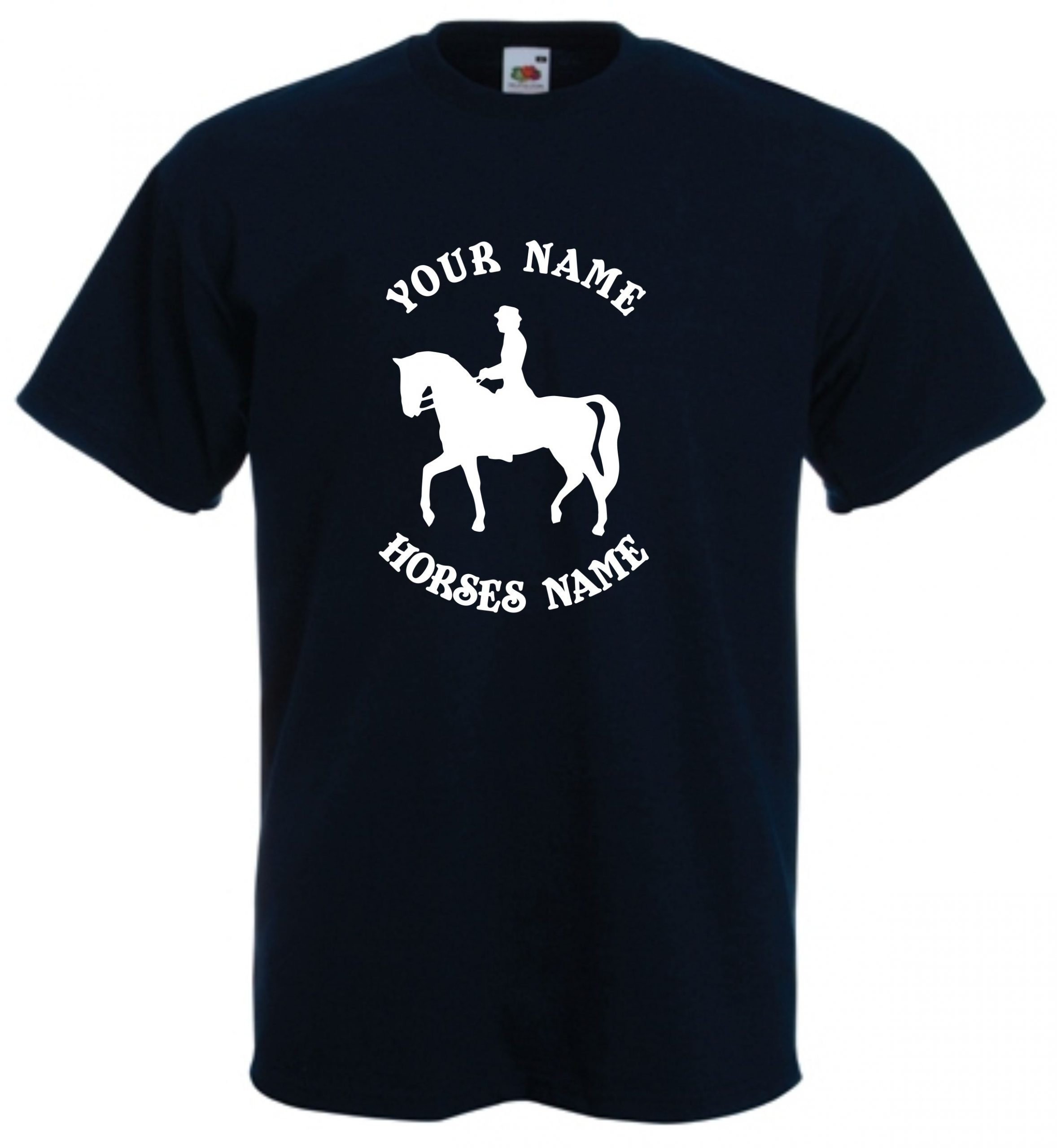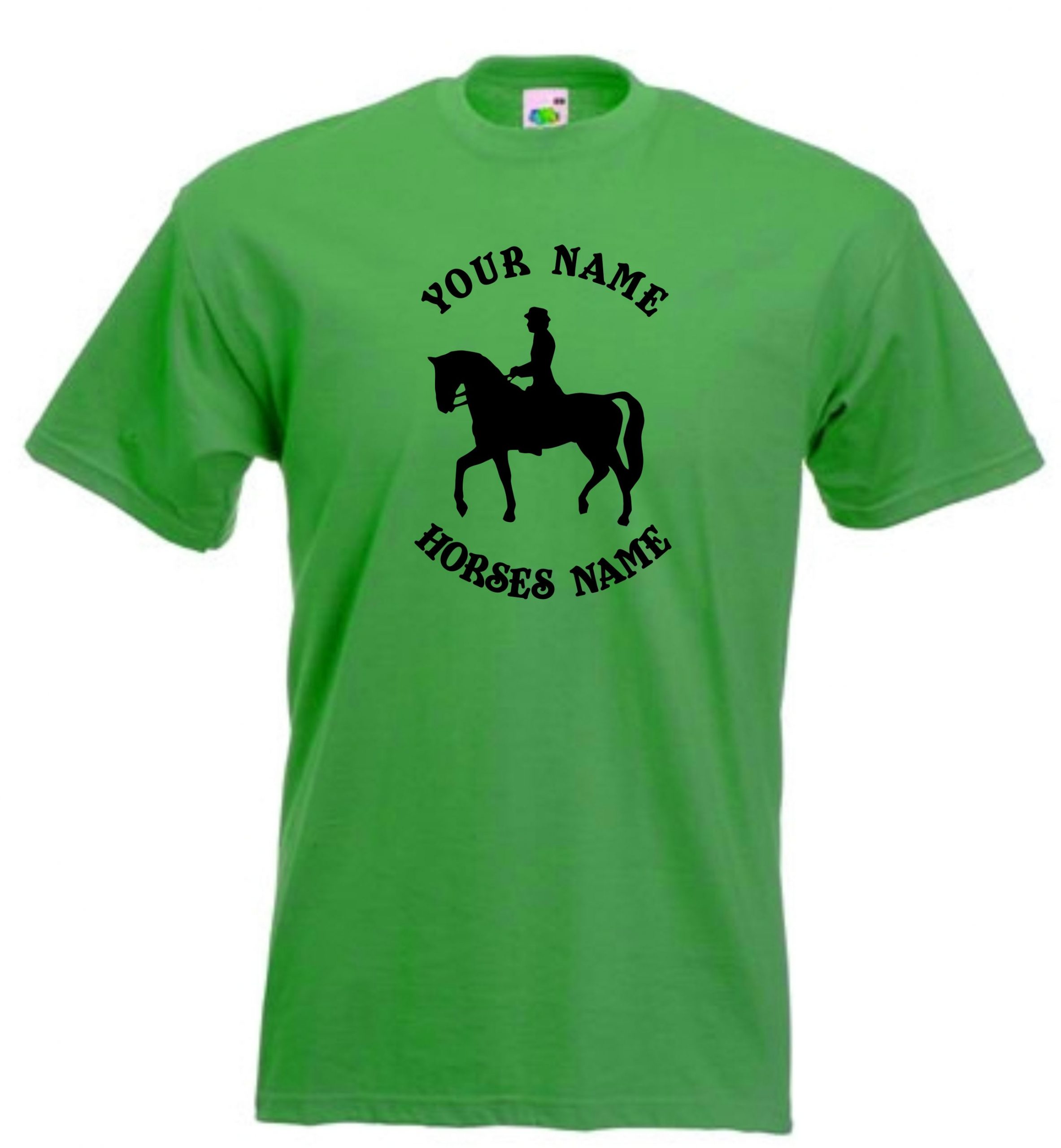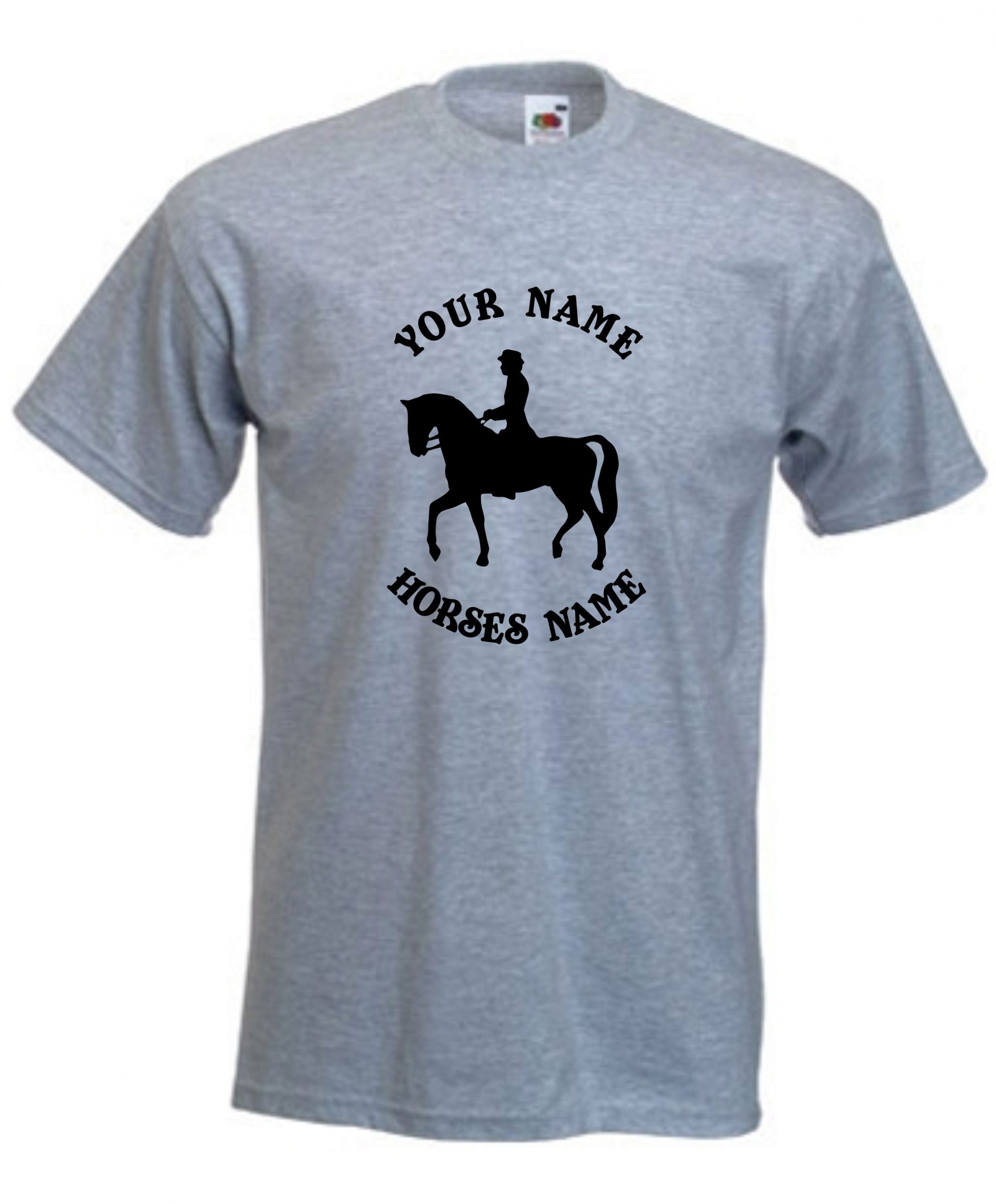 This is our Kids Horse Dressage Riding T-Shirt that can be personalised by adding the riders and horses names and would be a great gift for any horse lover.