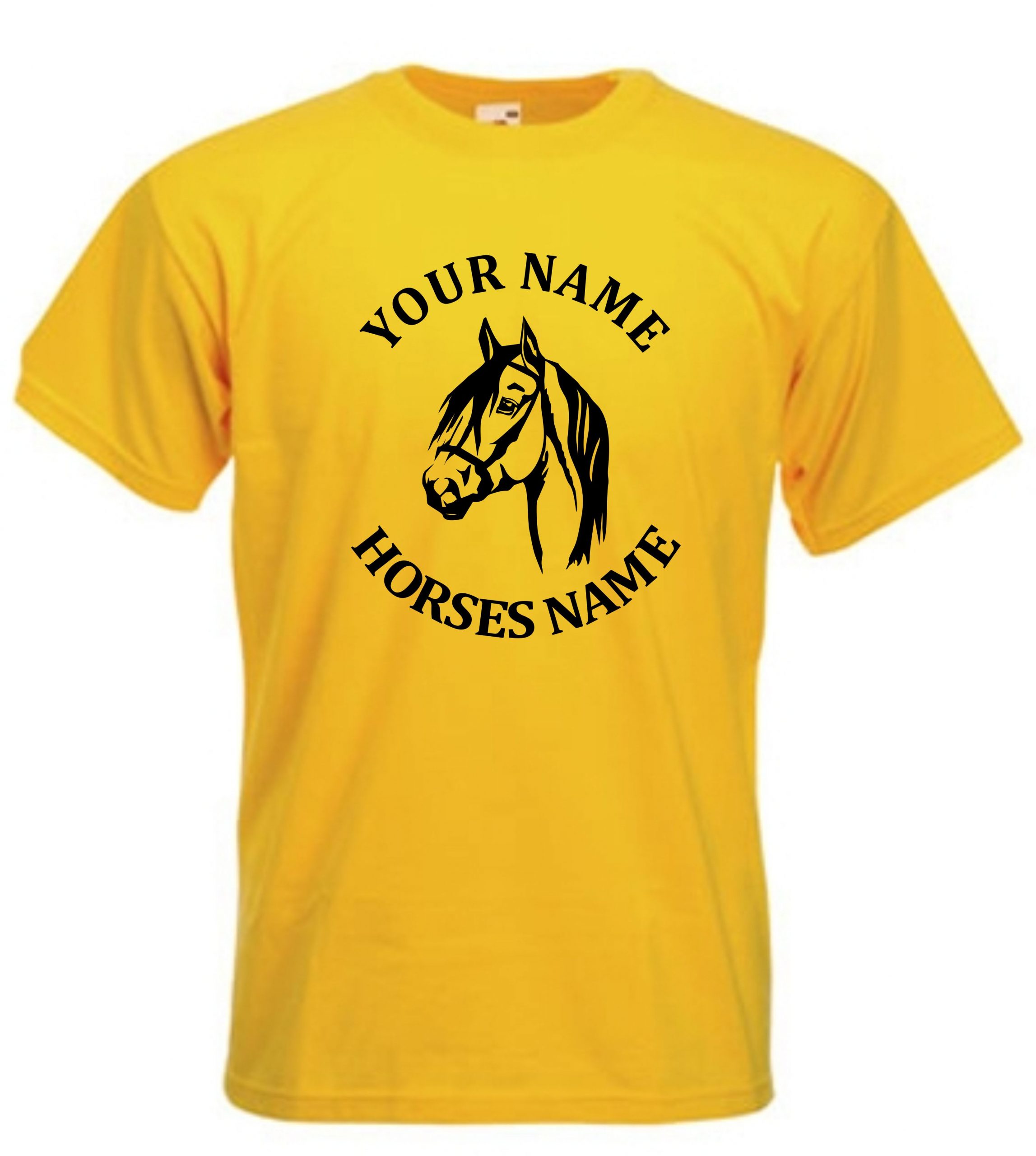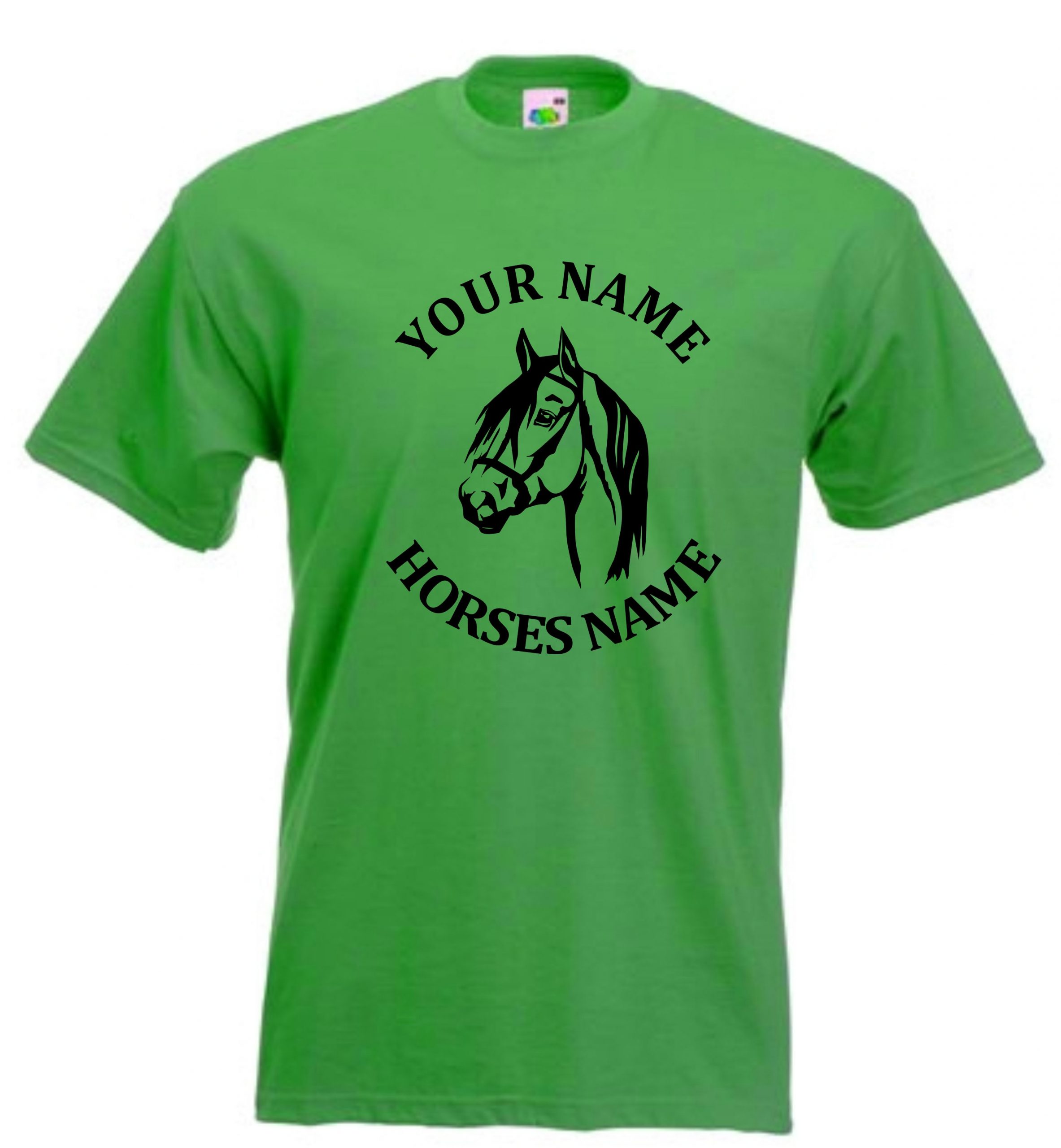 This is our Kids Horse Riding T-Shirt that can be personalised by adding the riders and horses names and would be a great gift for any horse lover.