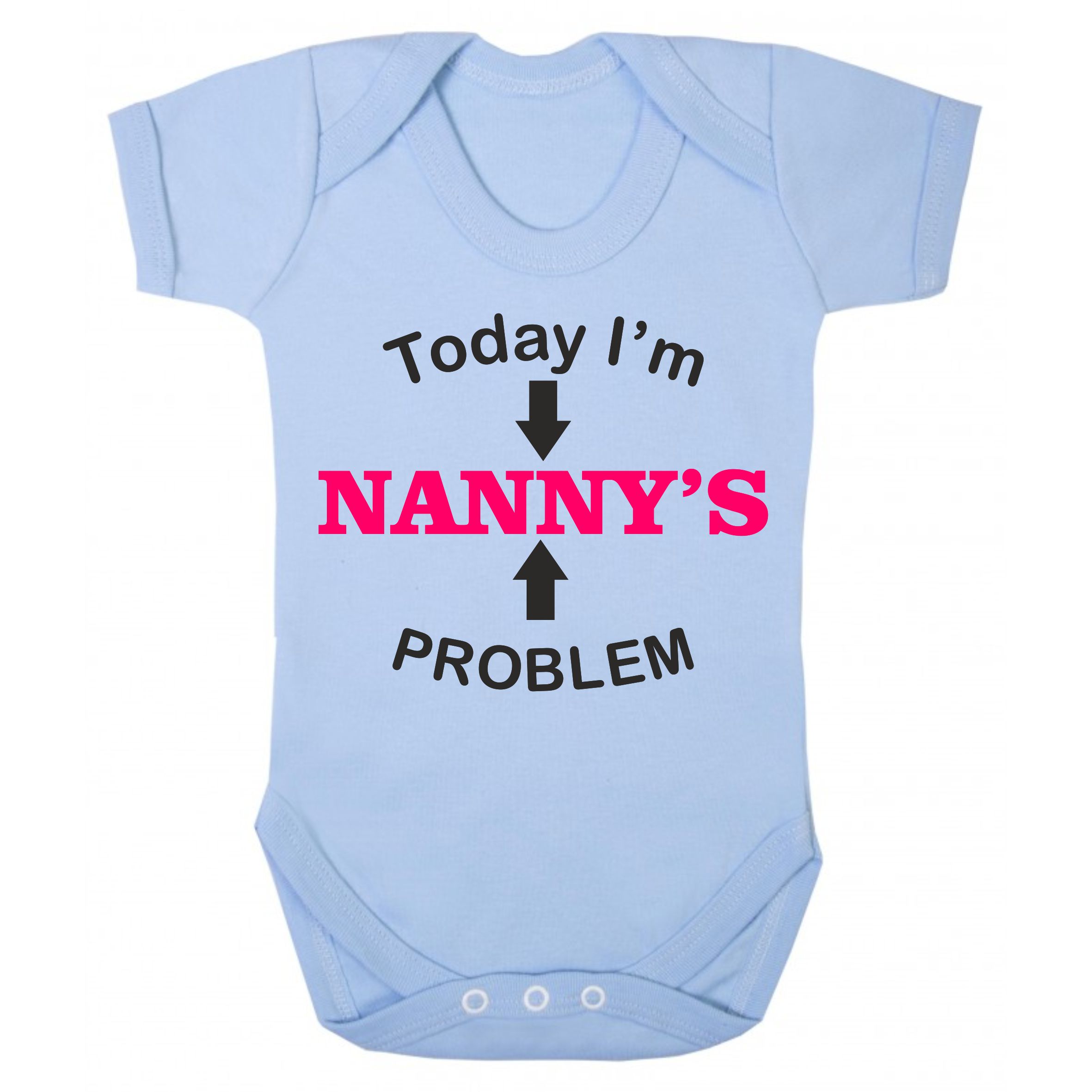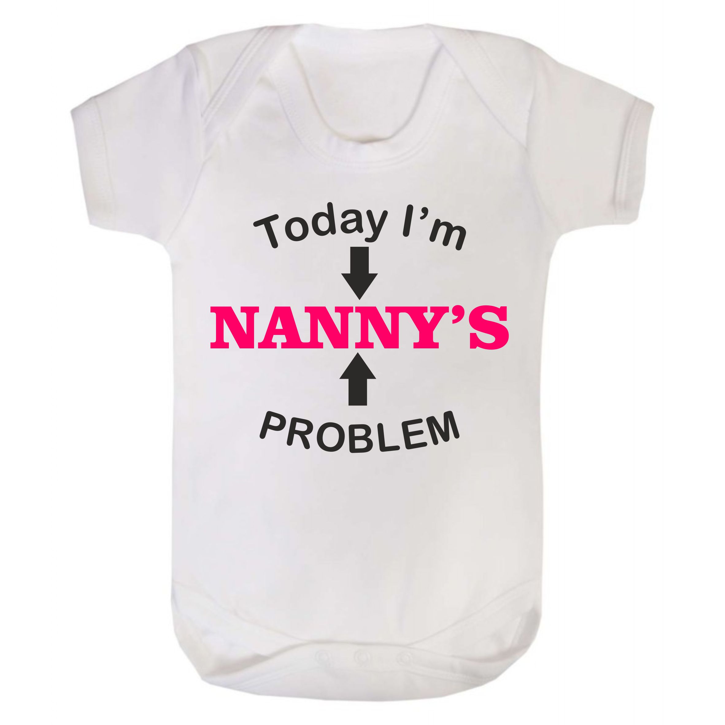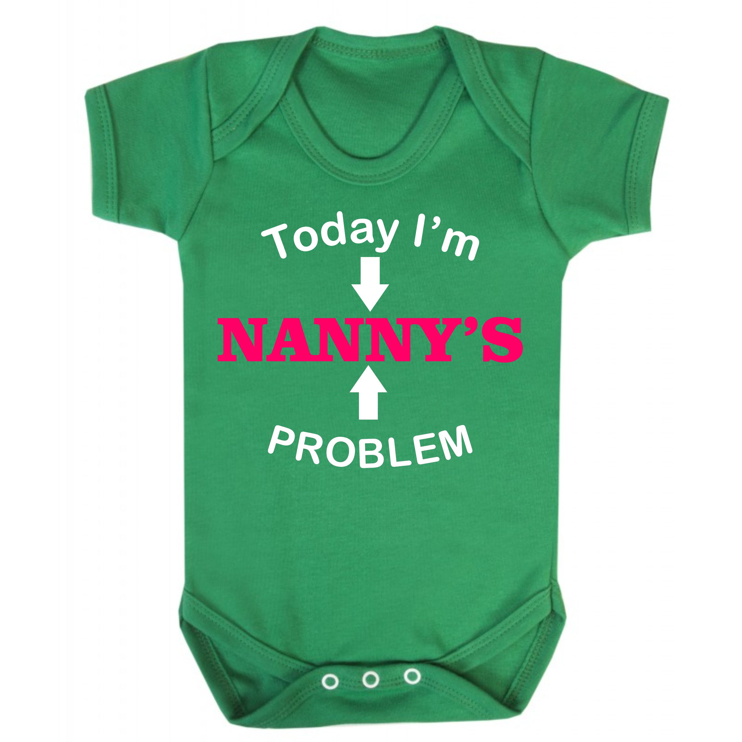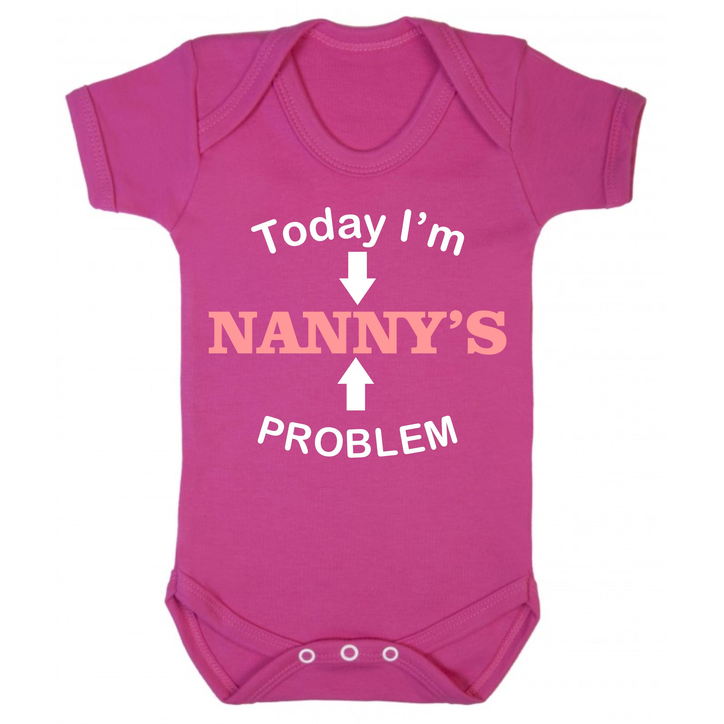 This is our Today I’m Nanny’s Problem bodysuit which is just one of our fantastic designs professionally printed onto a high quality 100% Cotton, supersoft bodysuit with 3 nickel free poppers.