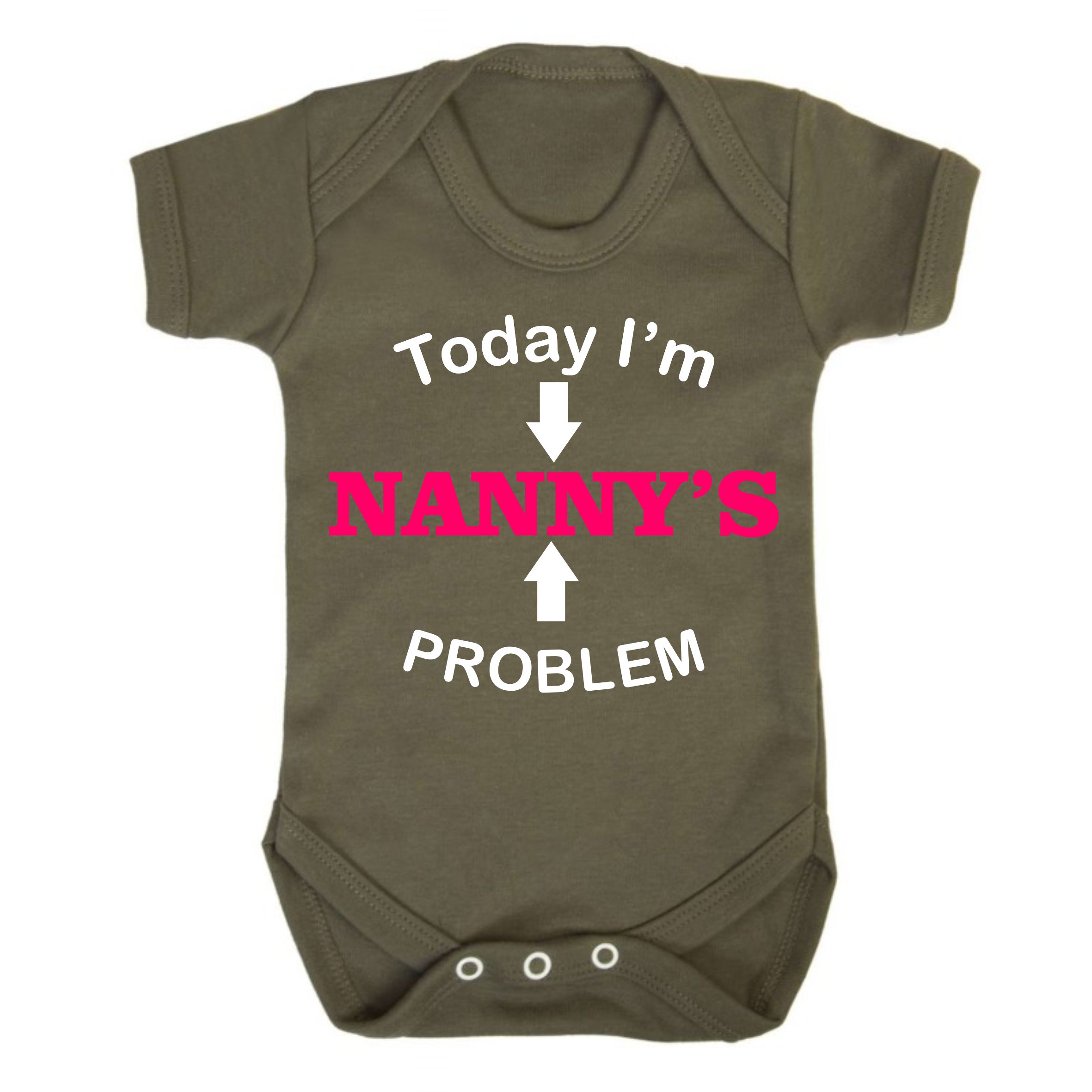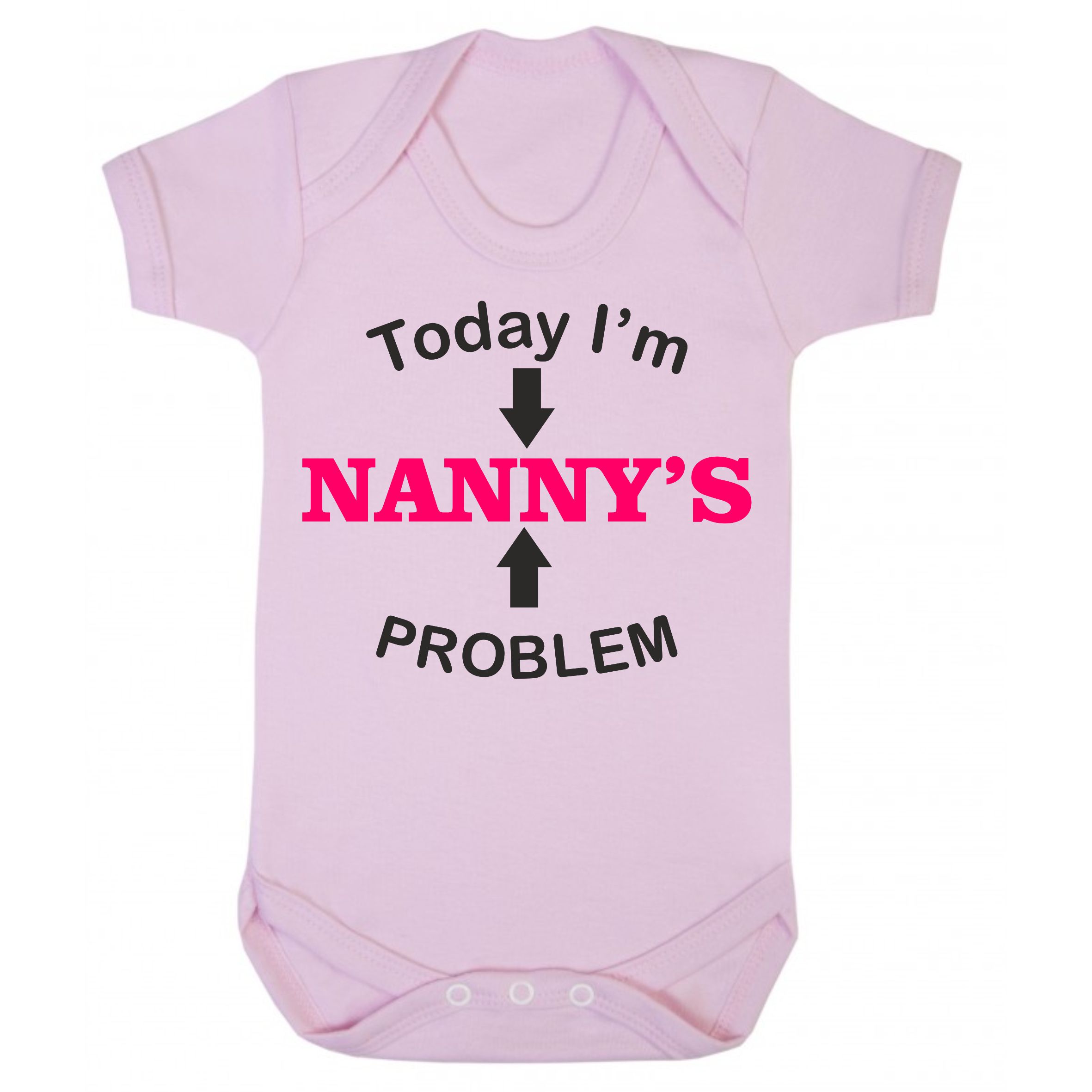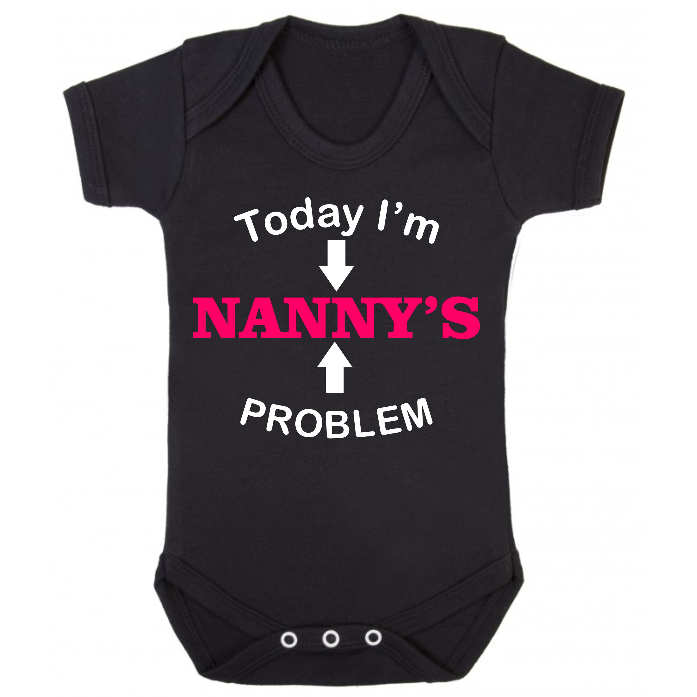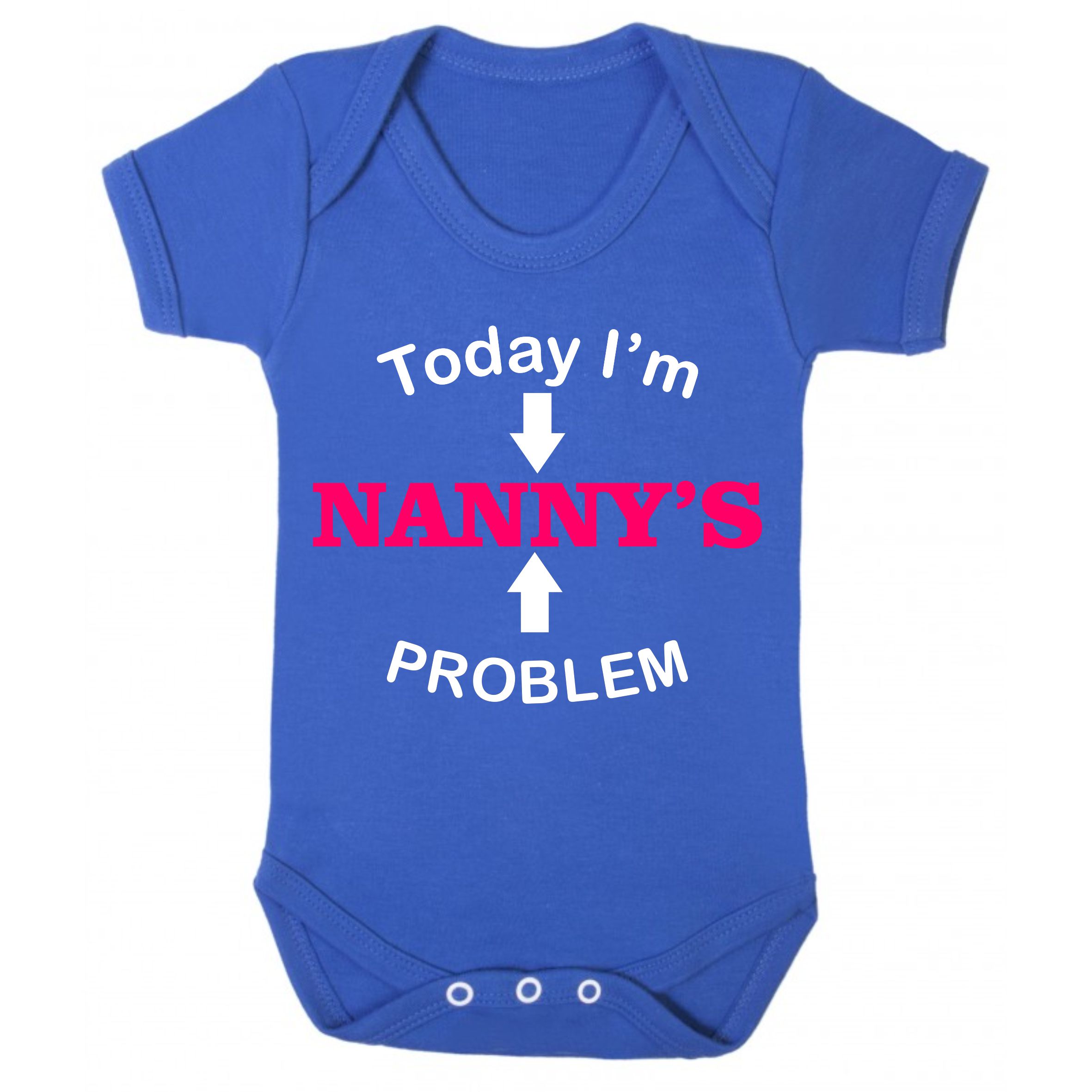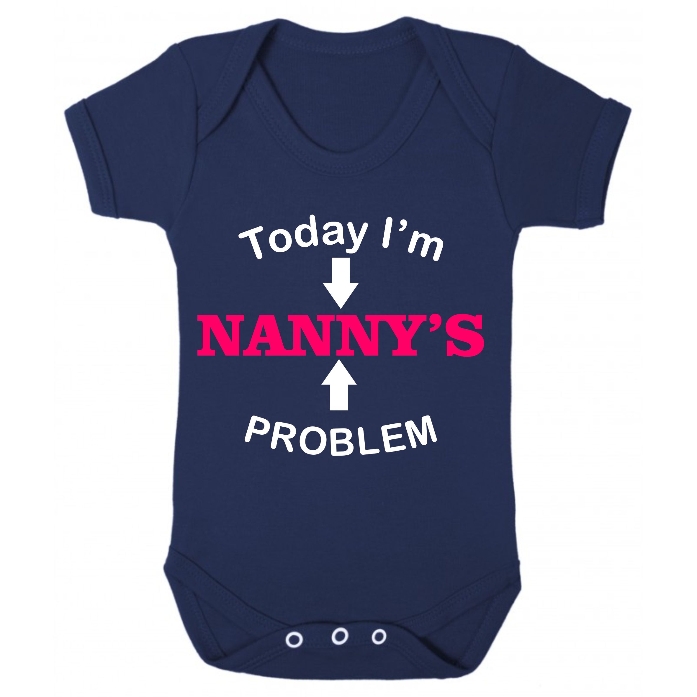 This is our Today I’m Nanny’s Problem bodysuit which is just one of our fantastic designs professionally printed onto a high quality 100% Cotton, supersoft bodysuit with 3 nickel free poppers.