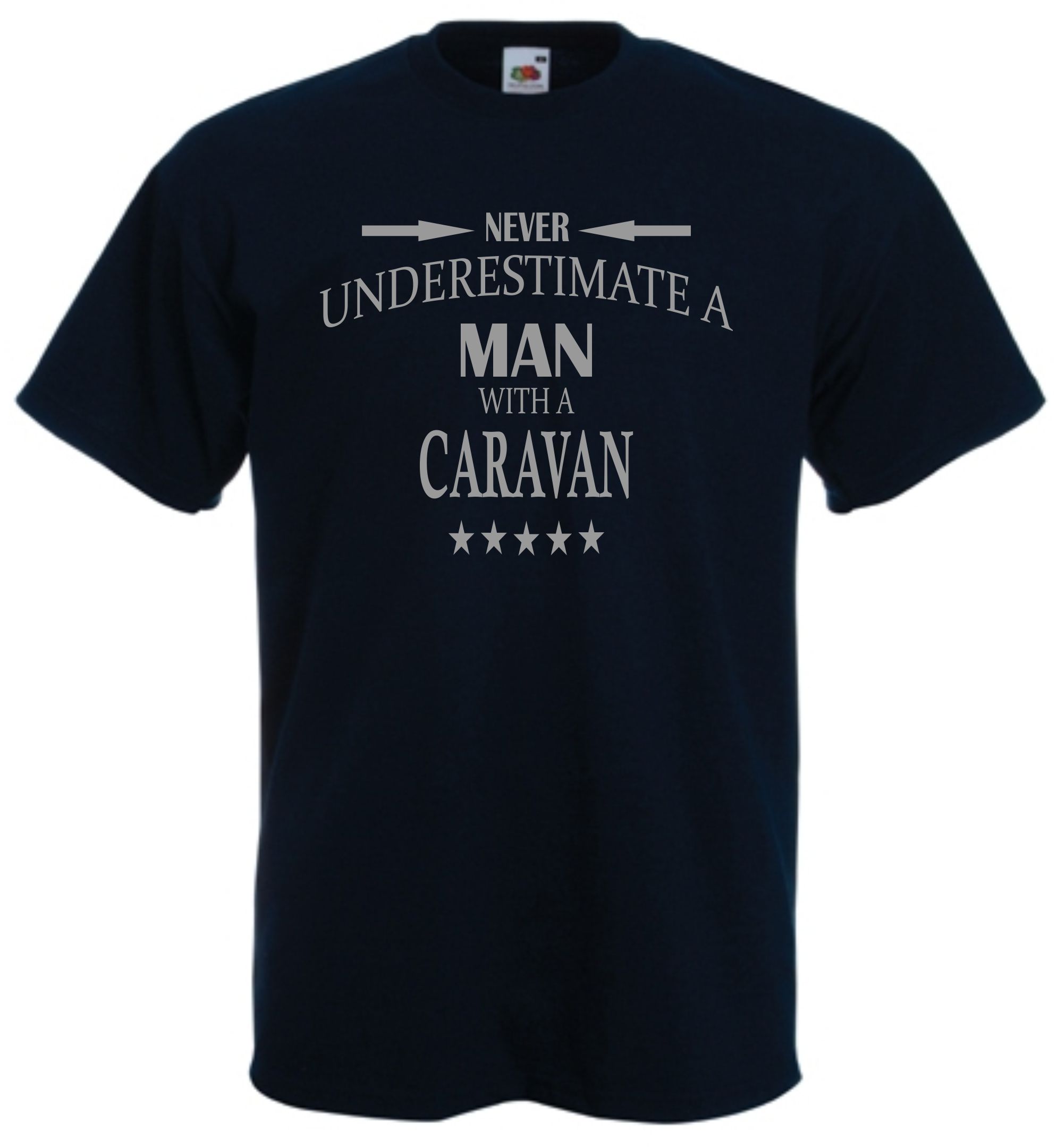 This is our Never Underestimate a Man with a Caravan T-Shirt which is just one of our fantastic designs professionally printed onto a high quality t-shirt.