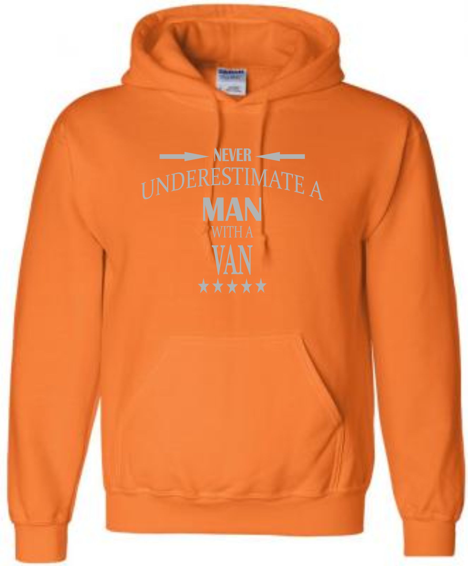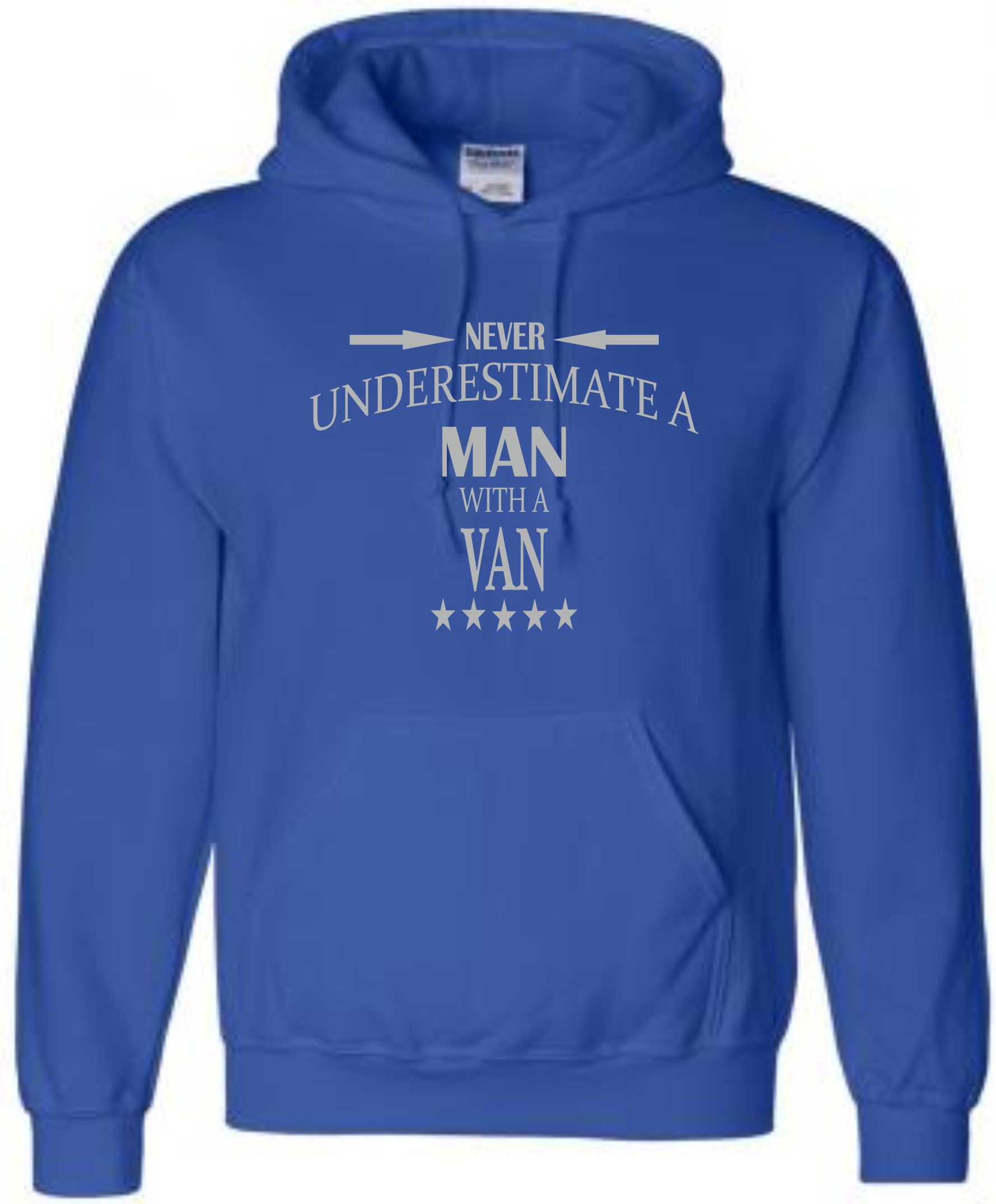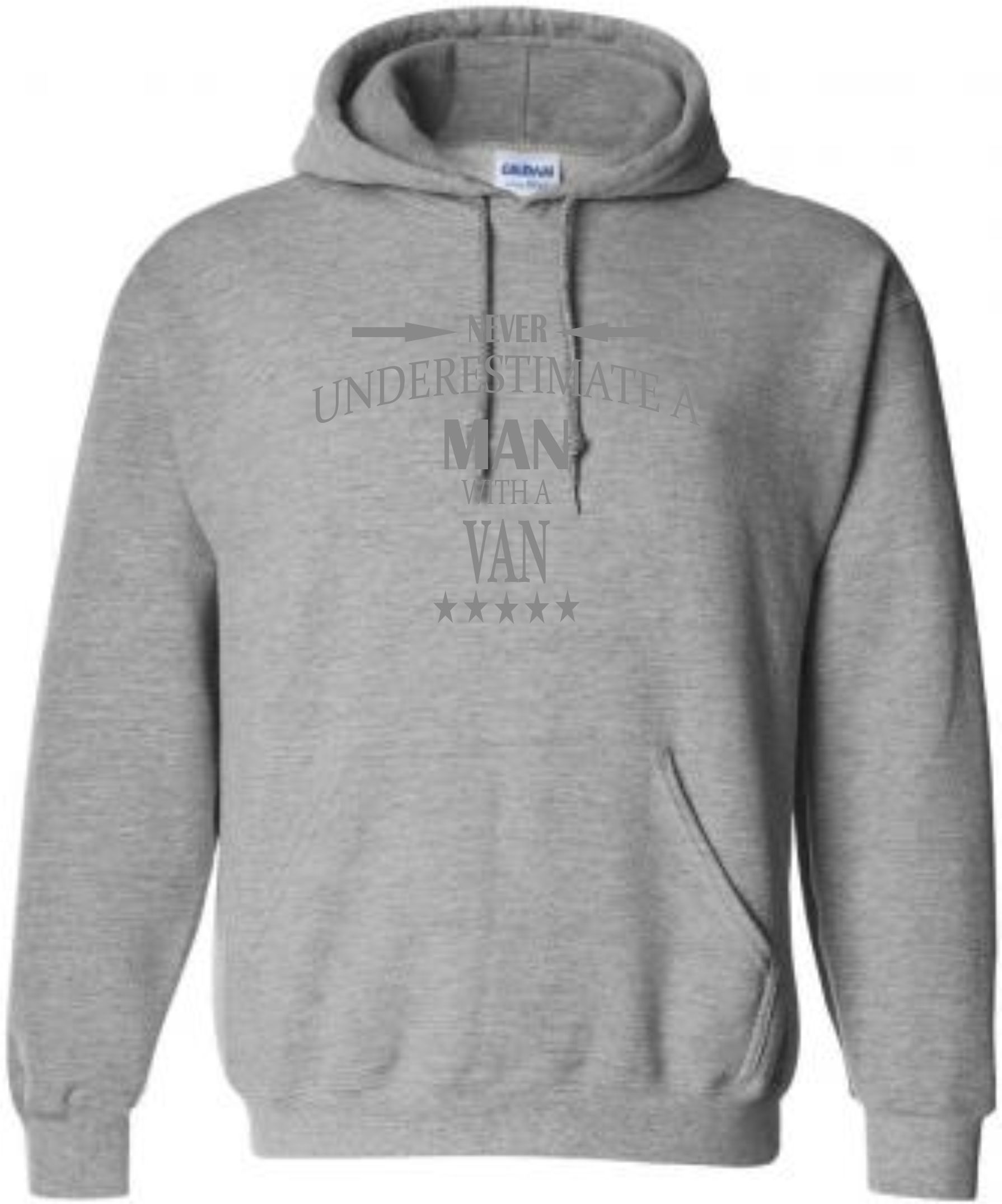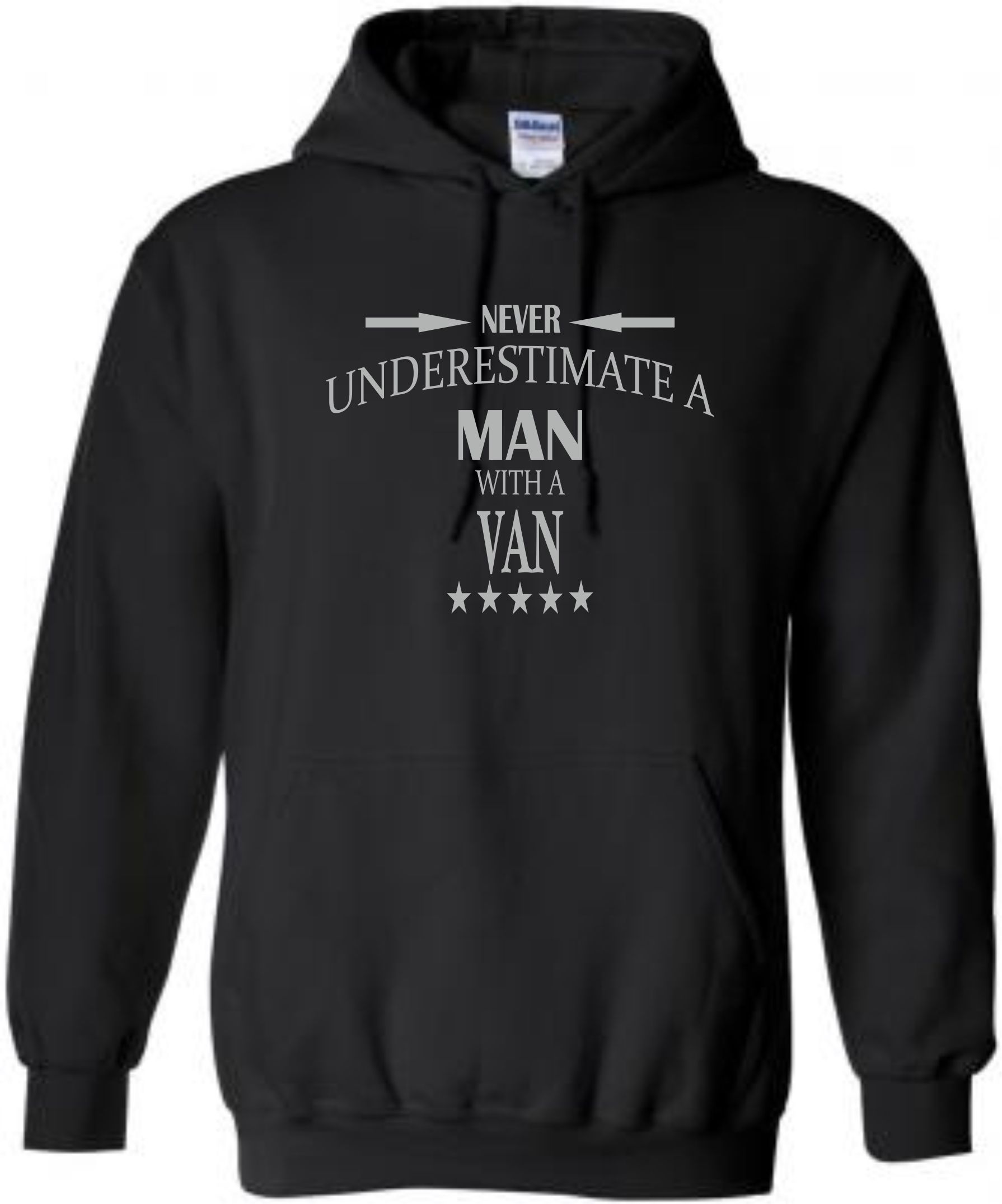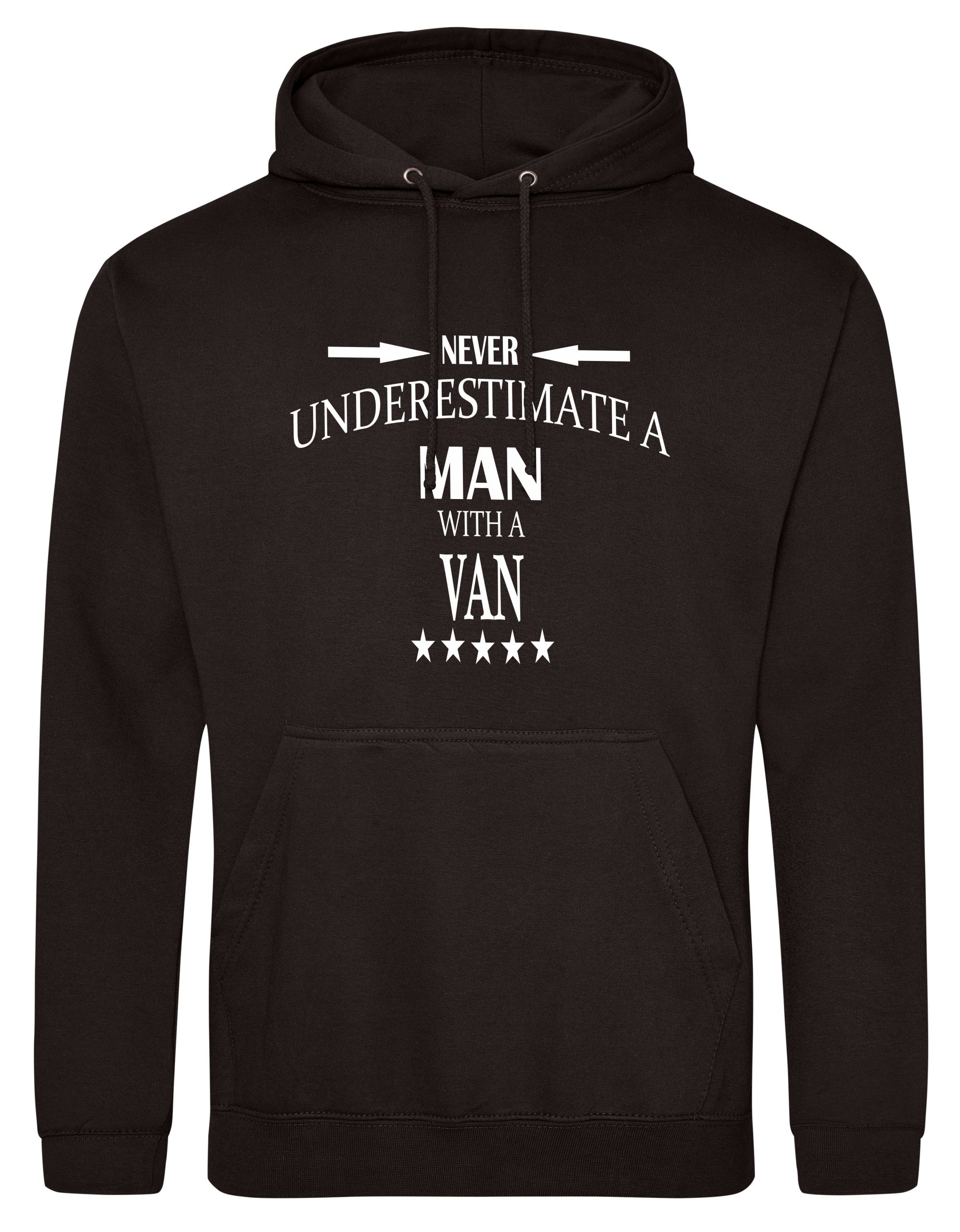 This is our funny Never Underestimate a Man with a Van hoodie just one of our fantastic designs professionally printed onto a high quality hoodie.