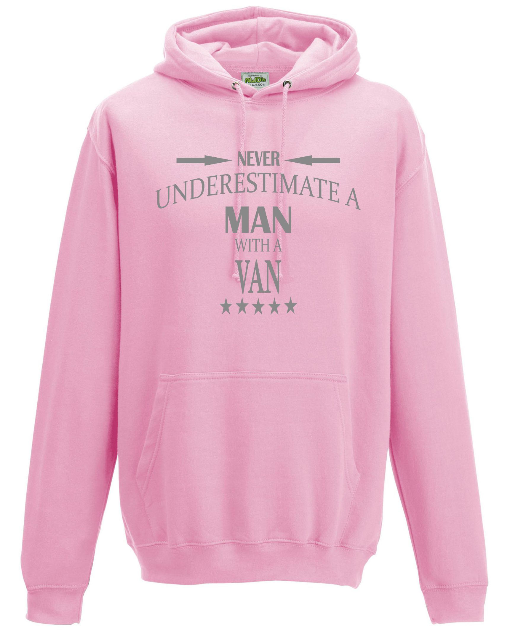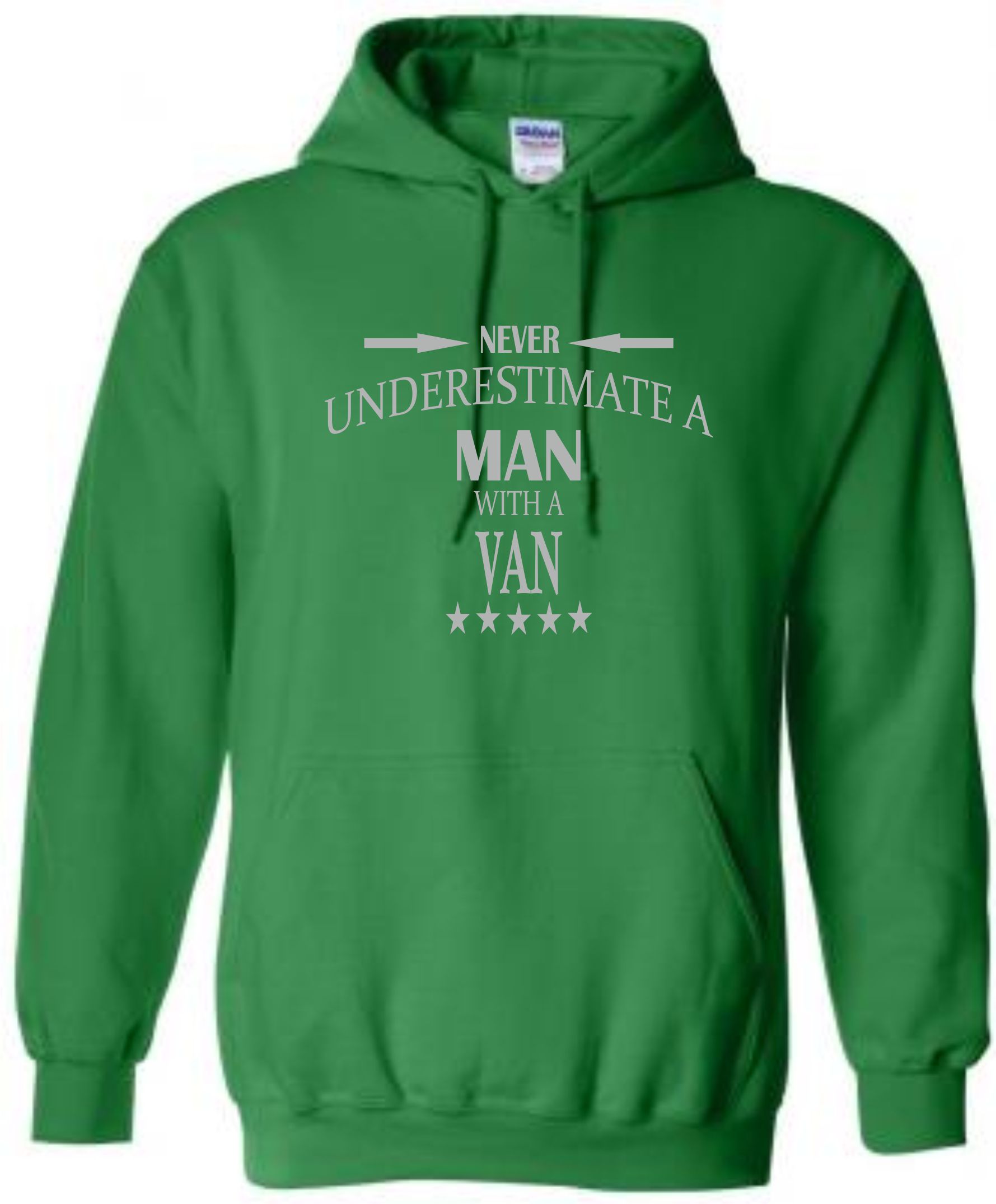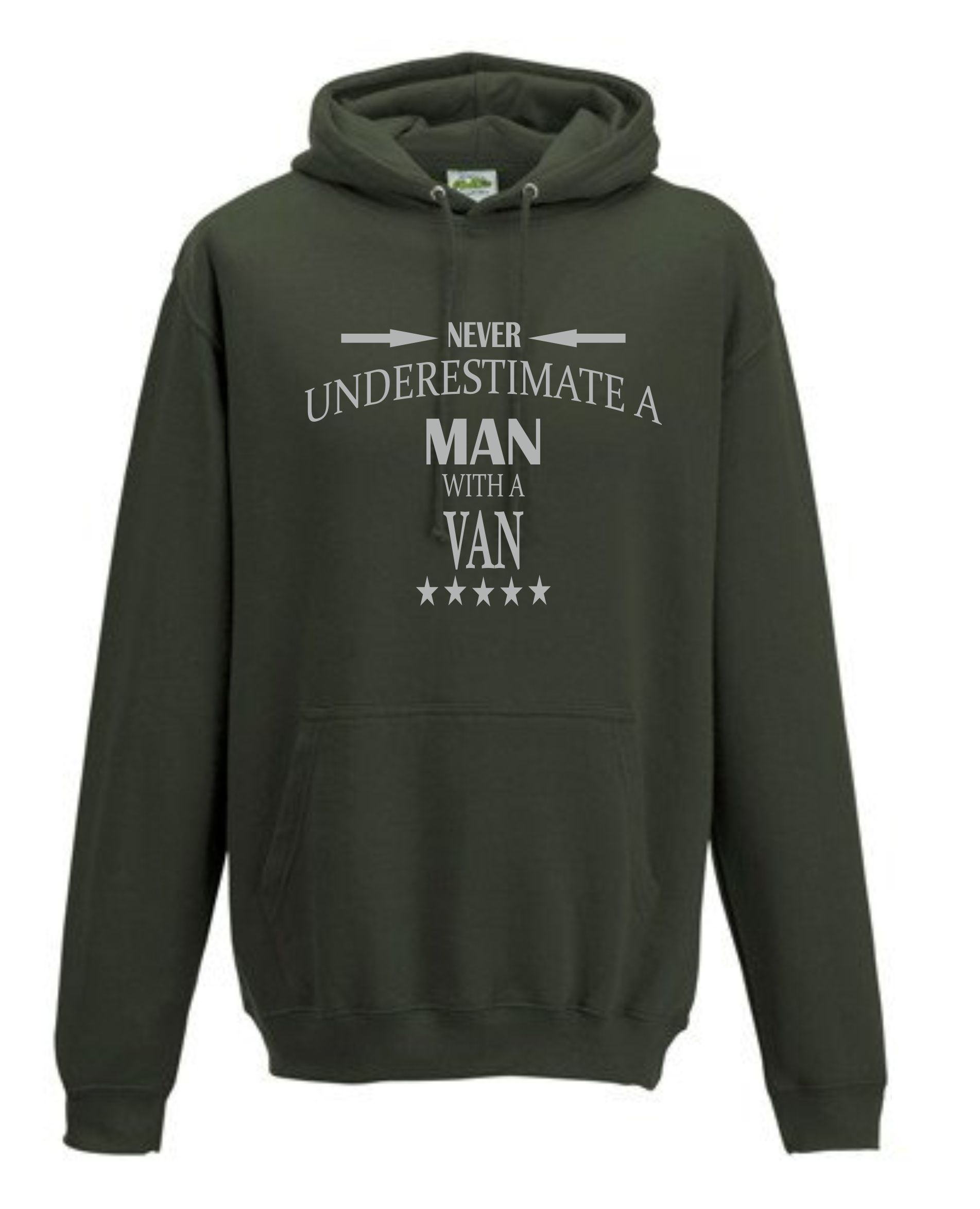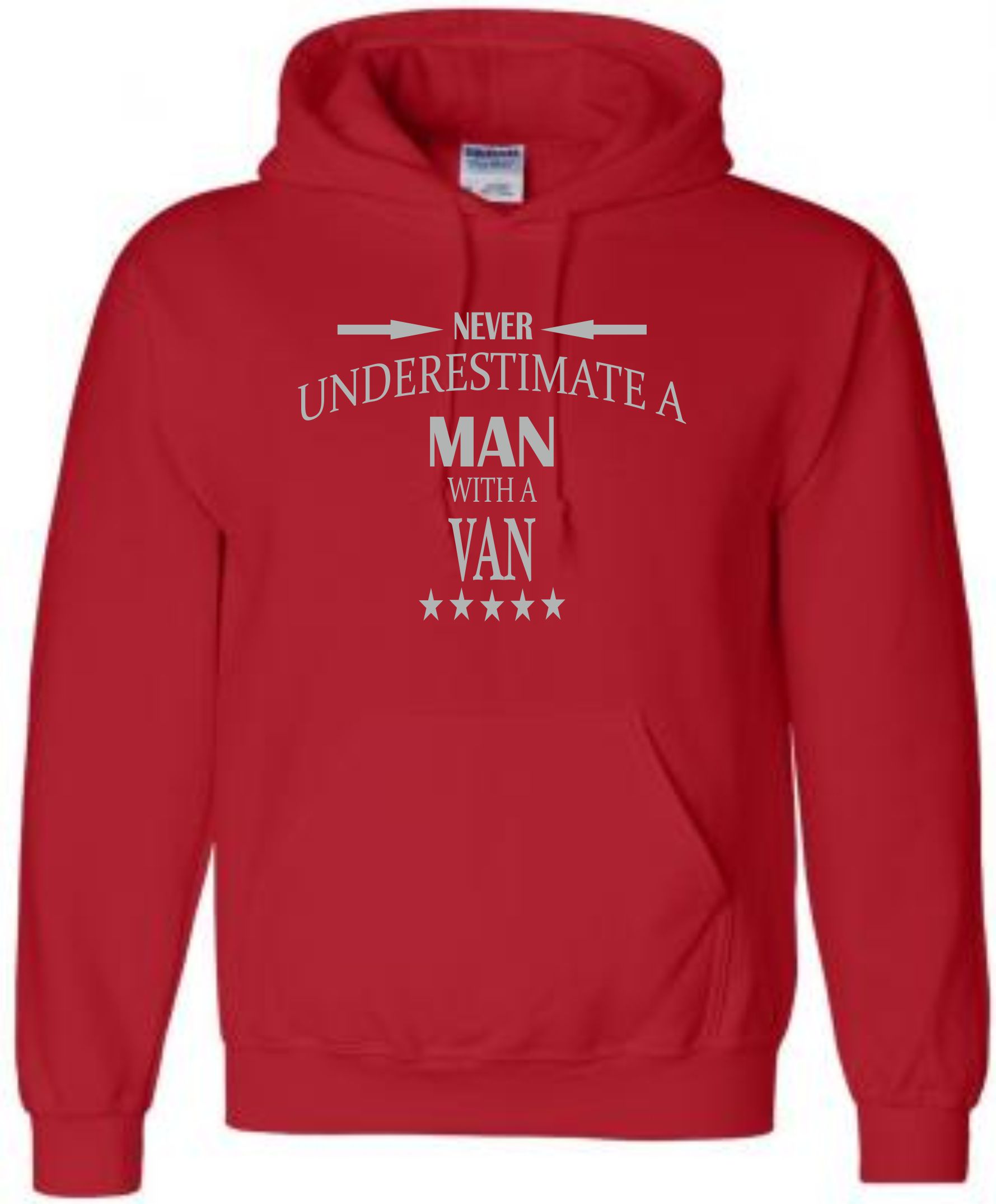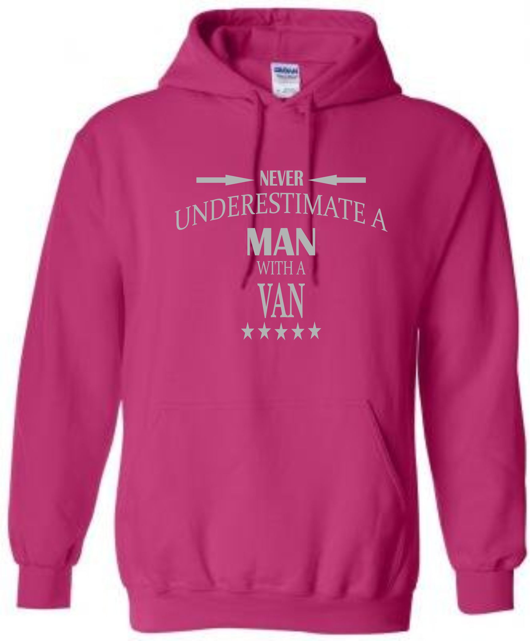 This is our funny Never Underestimate a Man with a Van hoodie just one of our fantastic designs professionally printed onto a high quality hoodie.