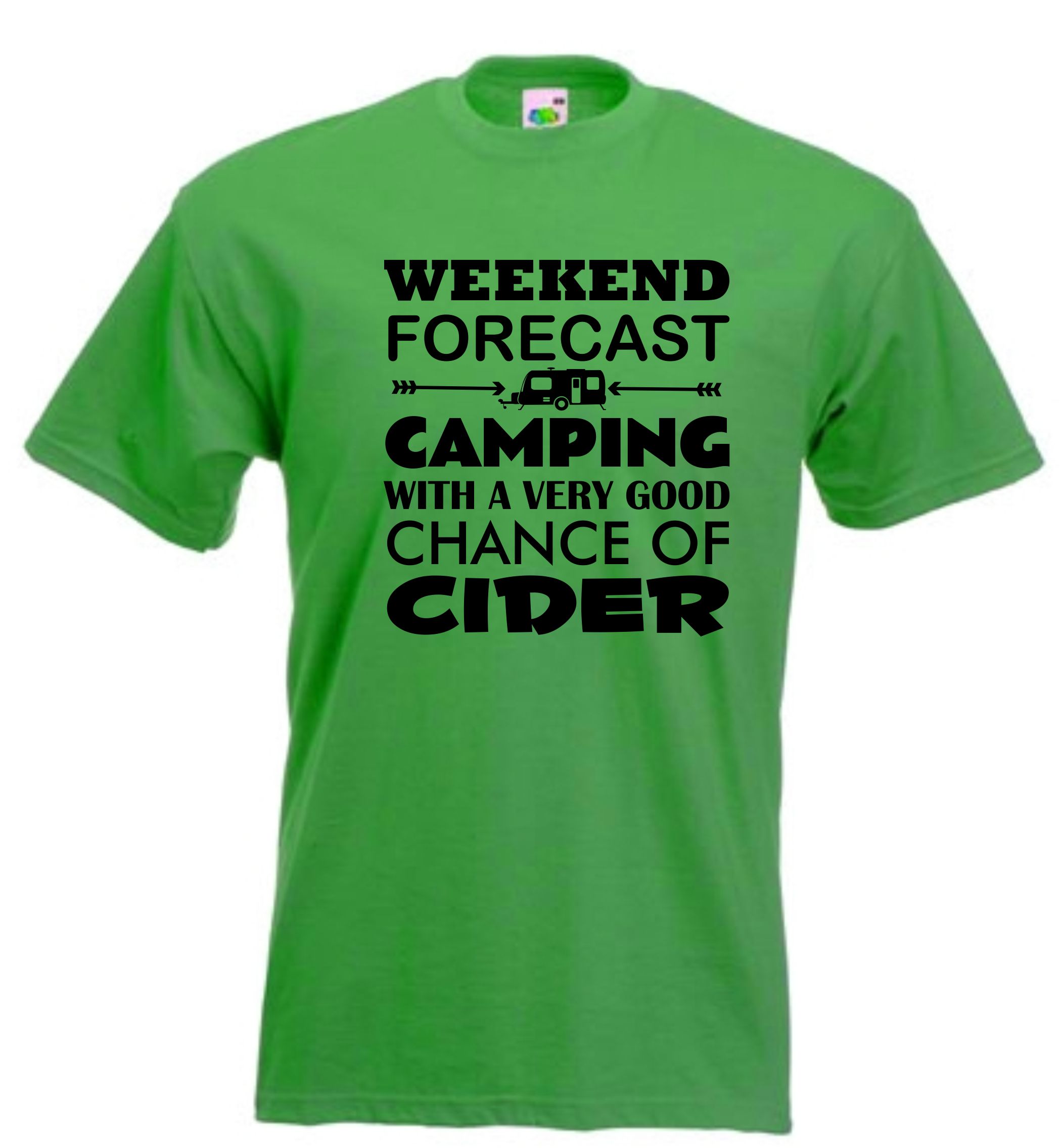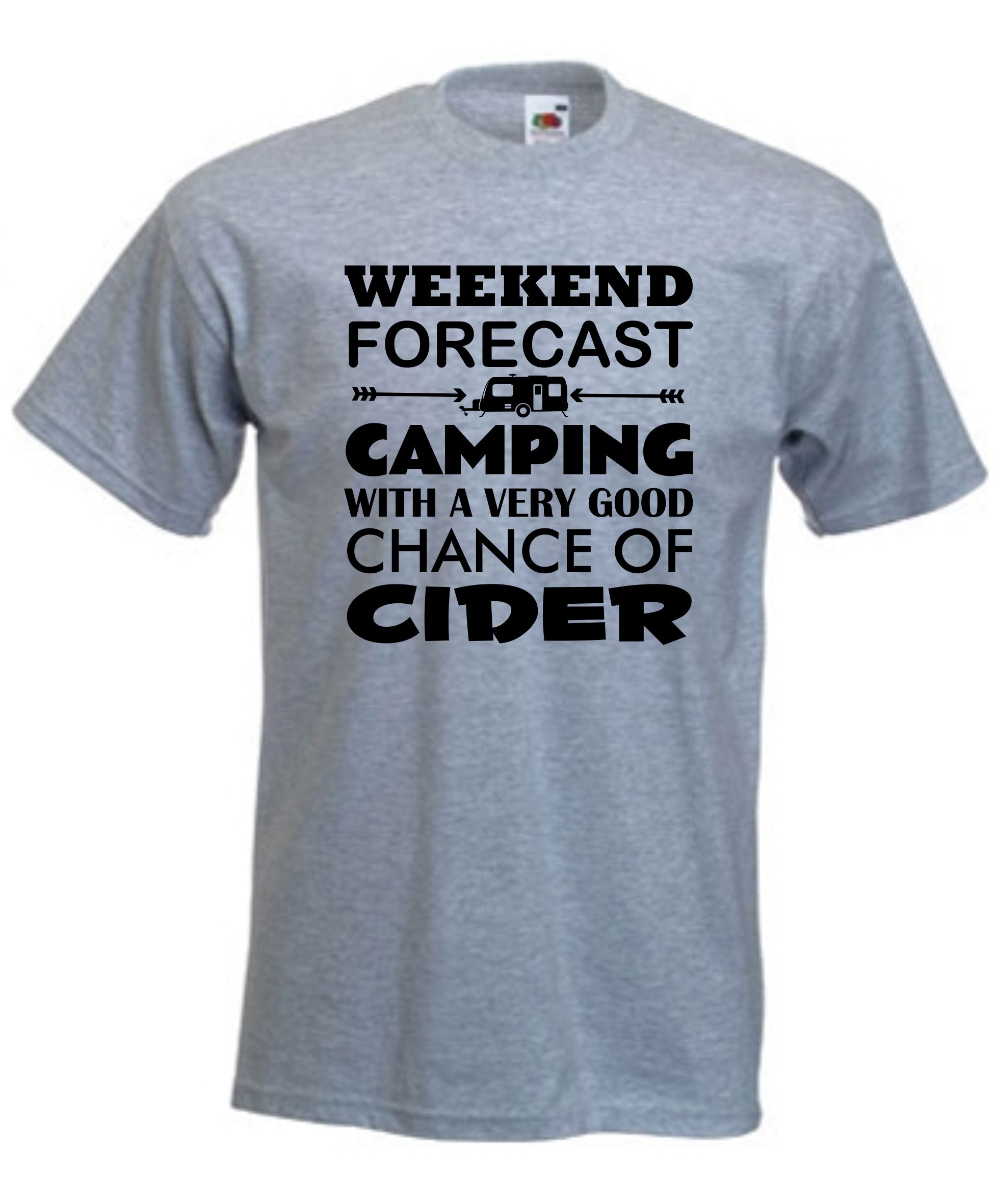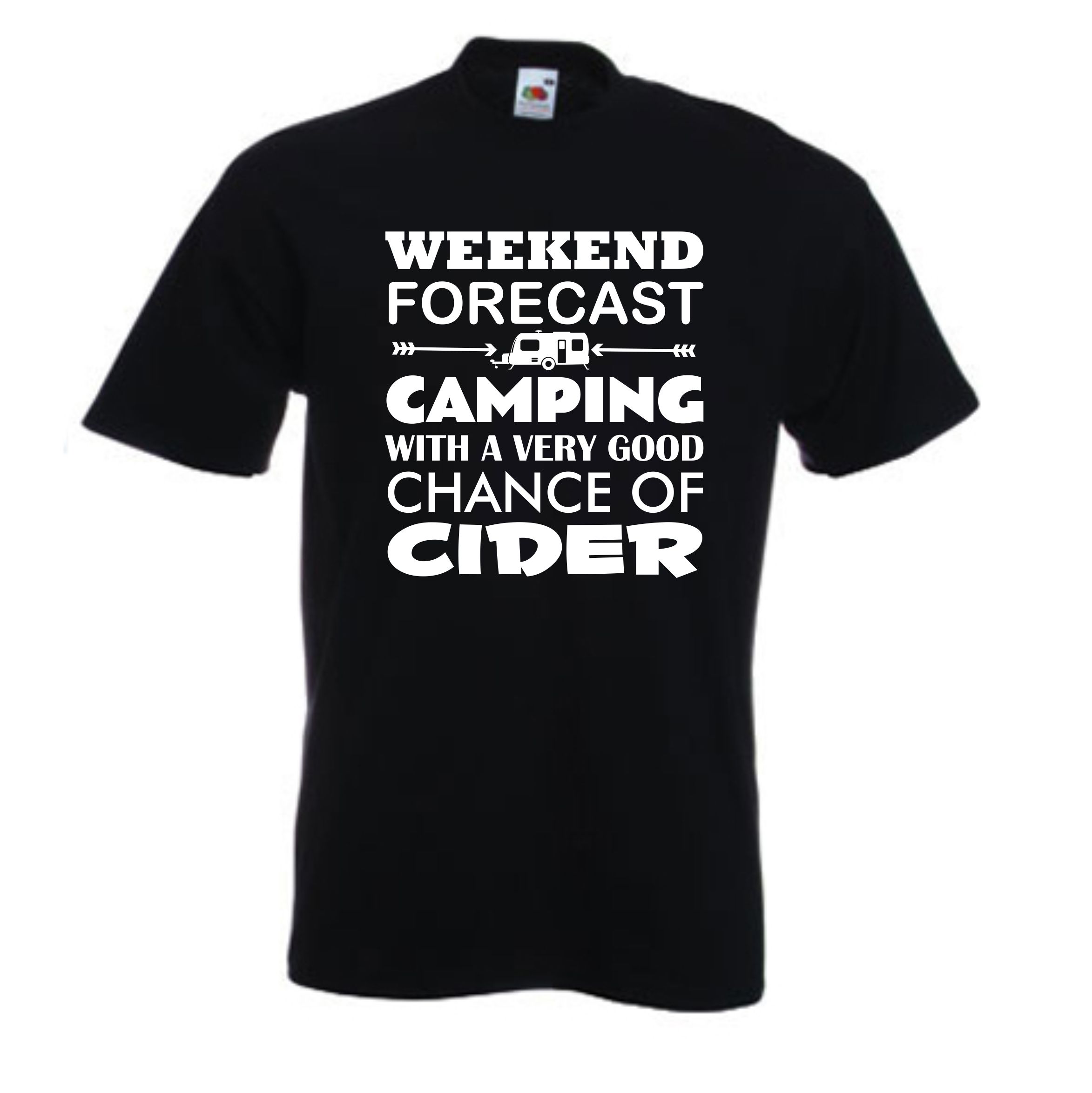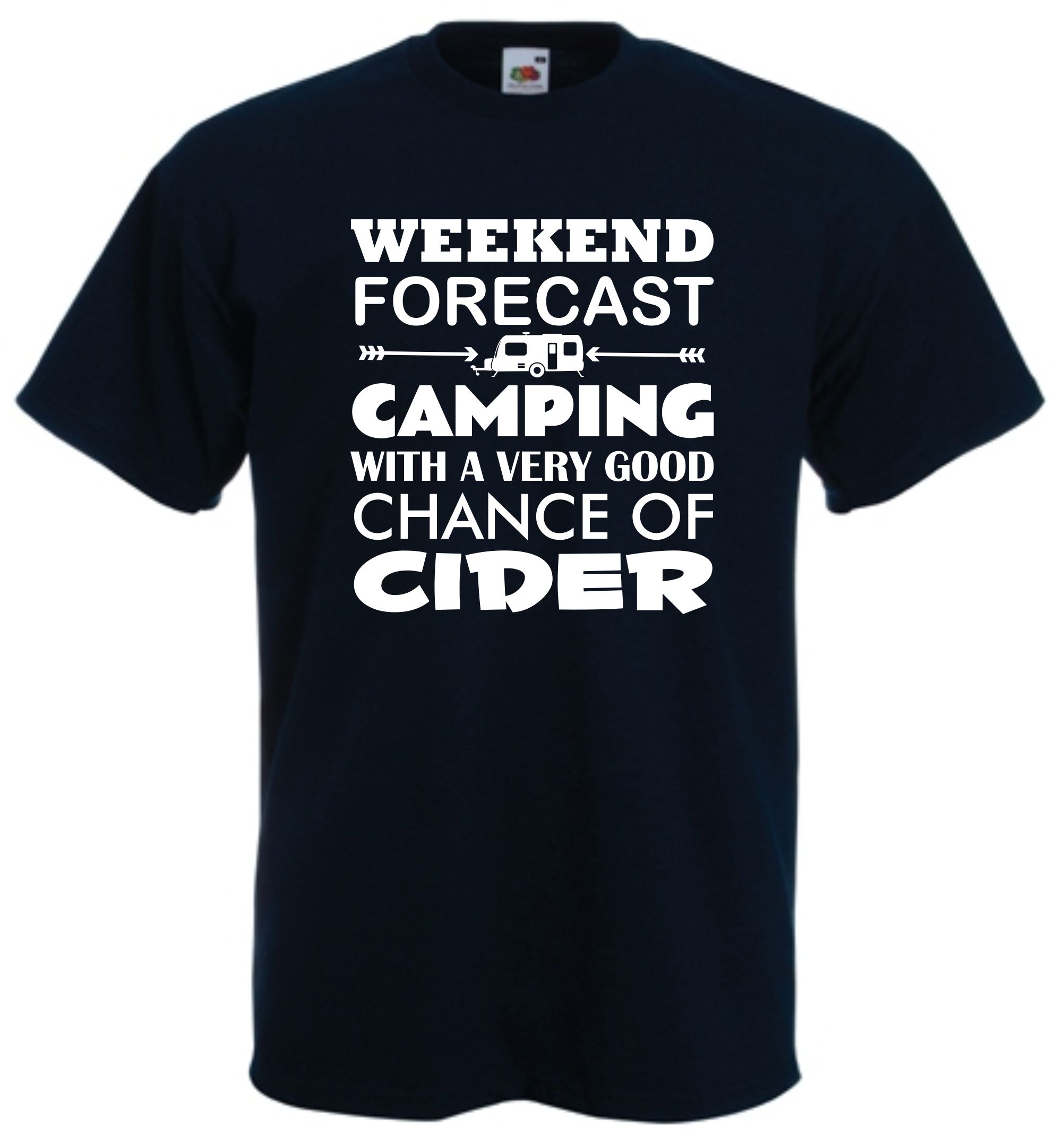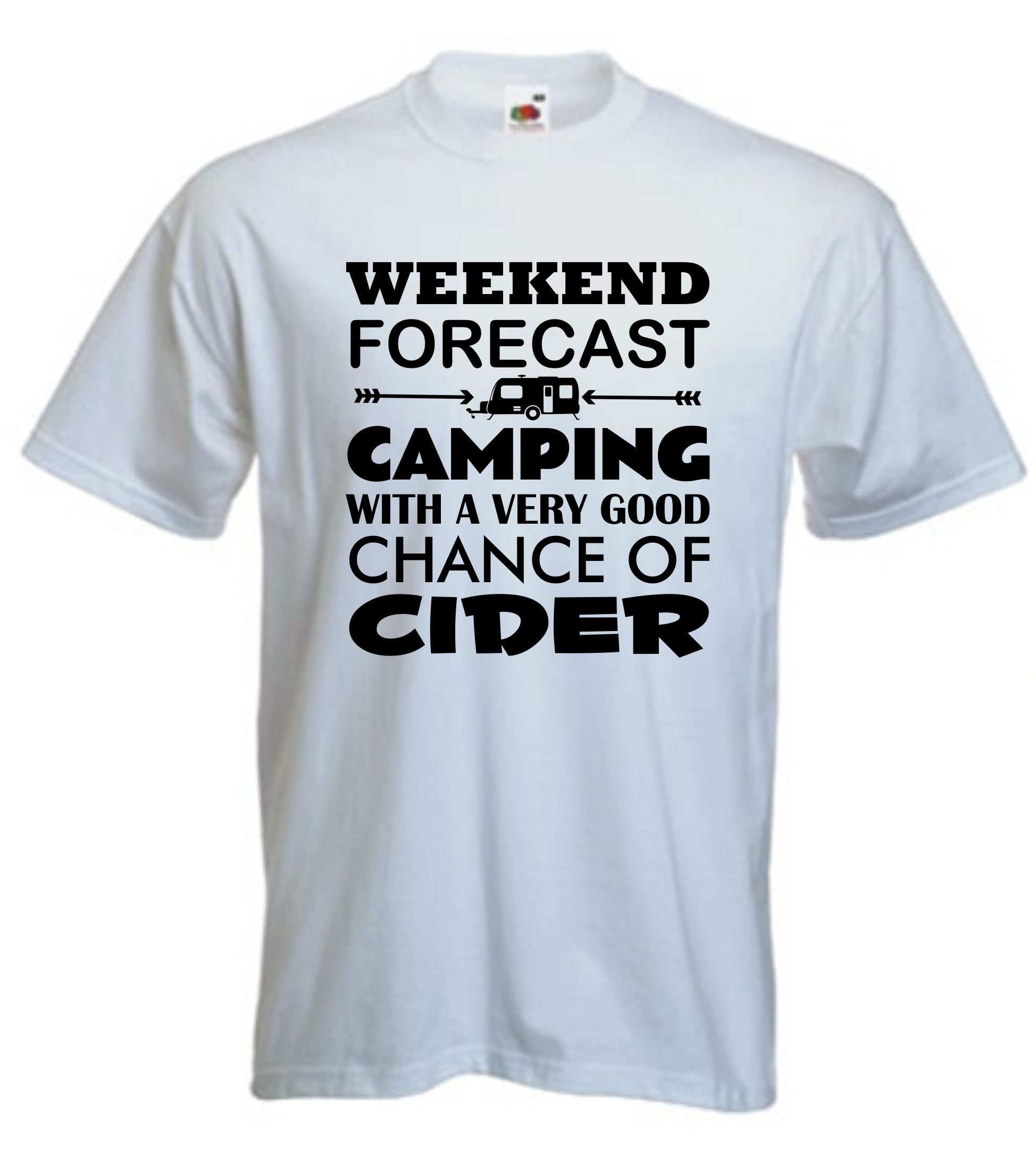 This is our Weekend Forecast – camping with a very good chance of cider t-shirt that would be a great gift for any caravan enthusiast.