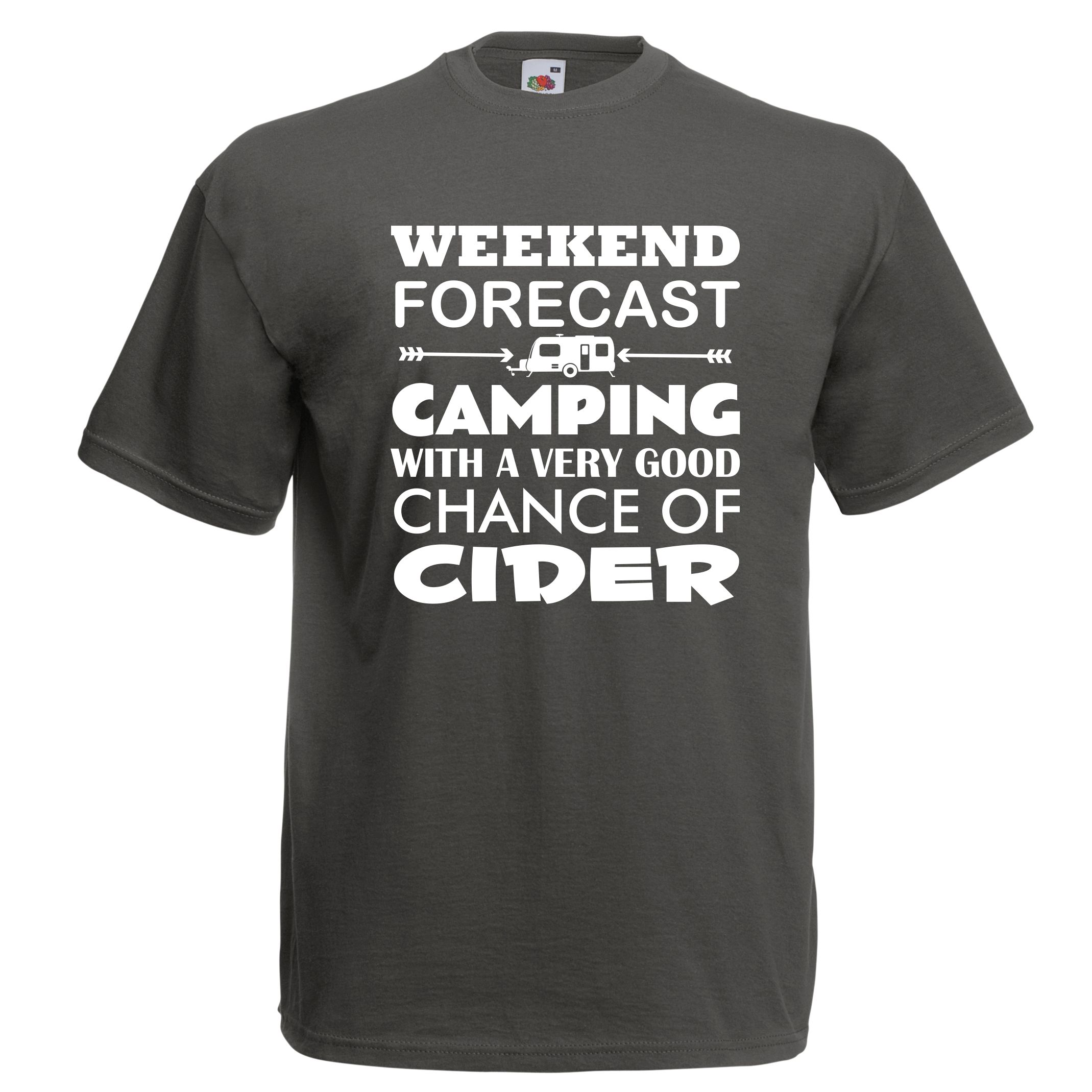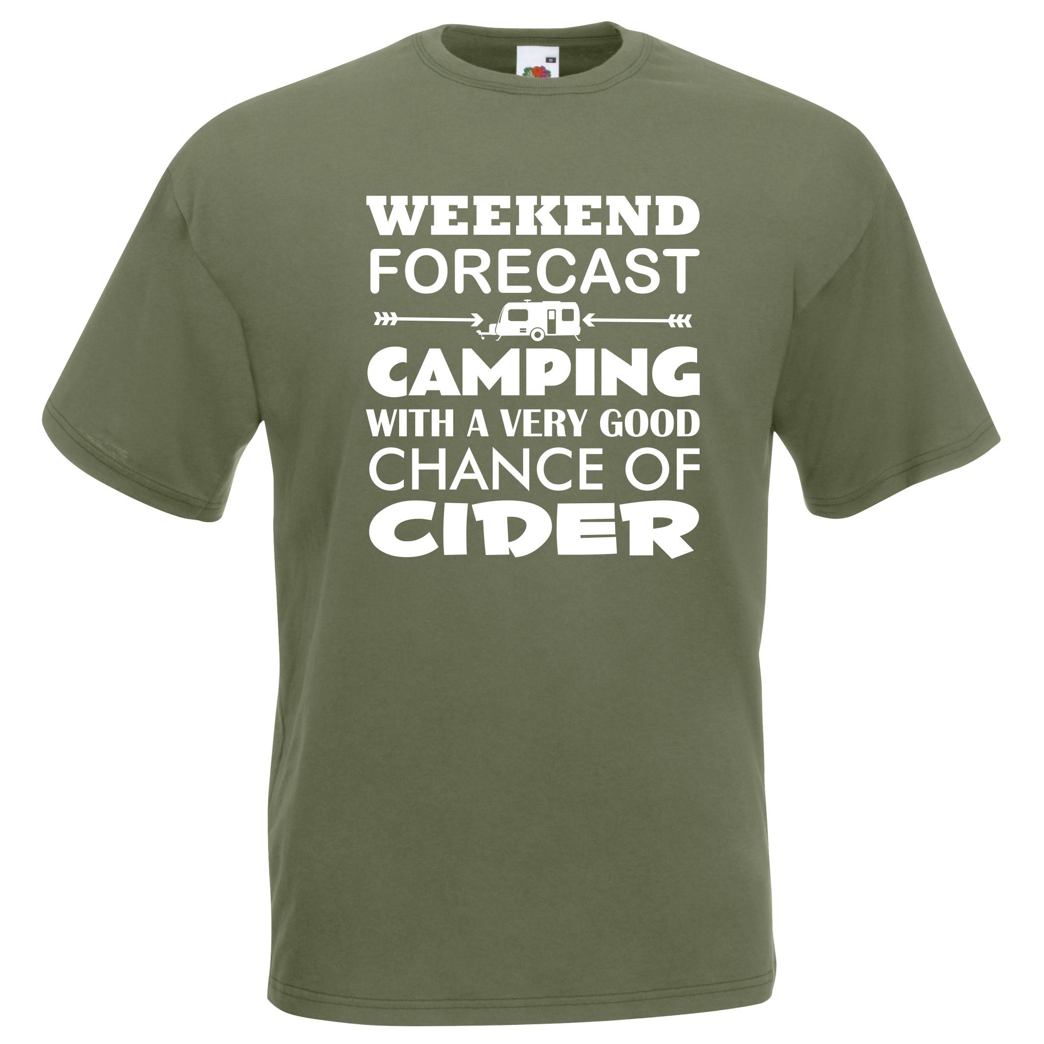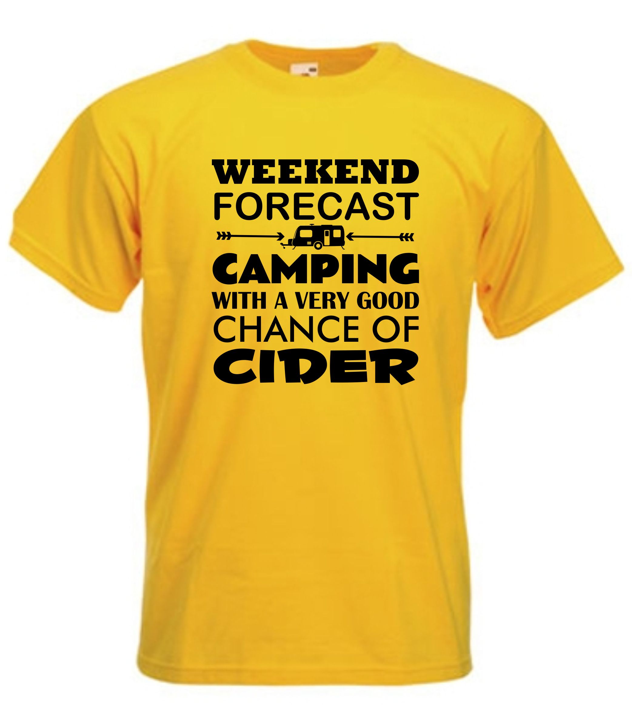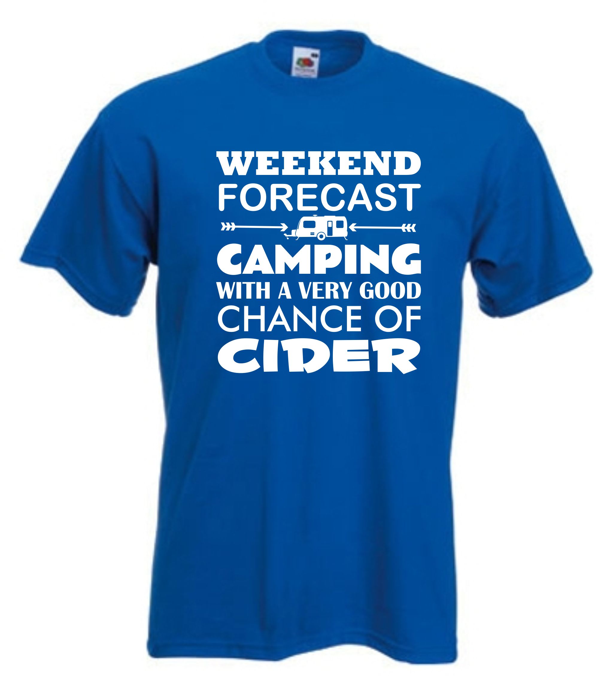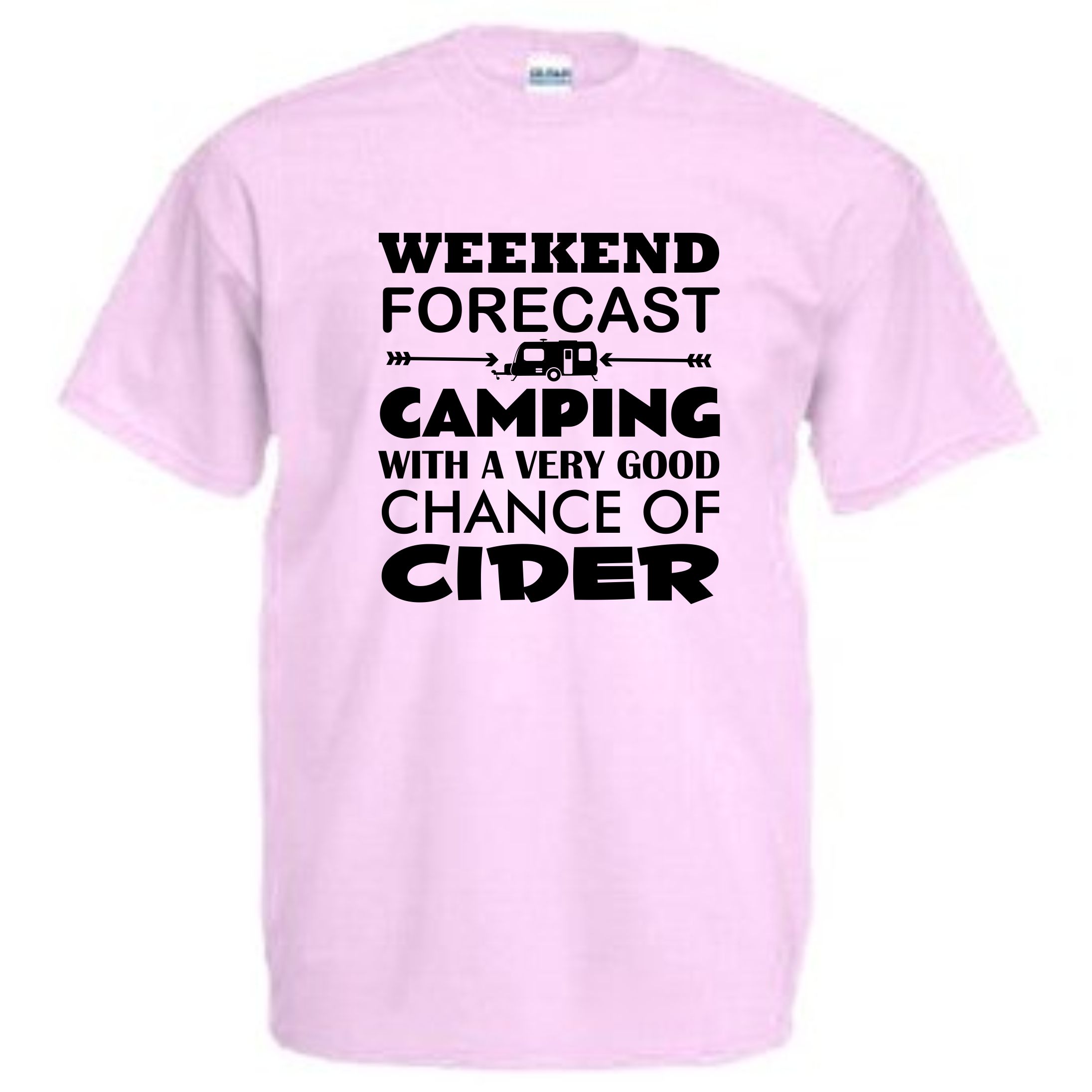 This is our Weekend Forecast – camping with a very good chance of cider t-shirt that would be a great gift for any caravan enthusiast.