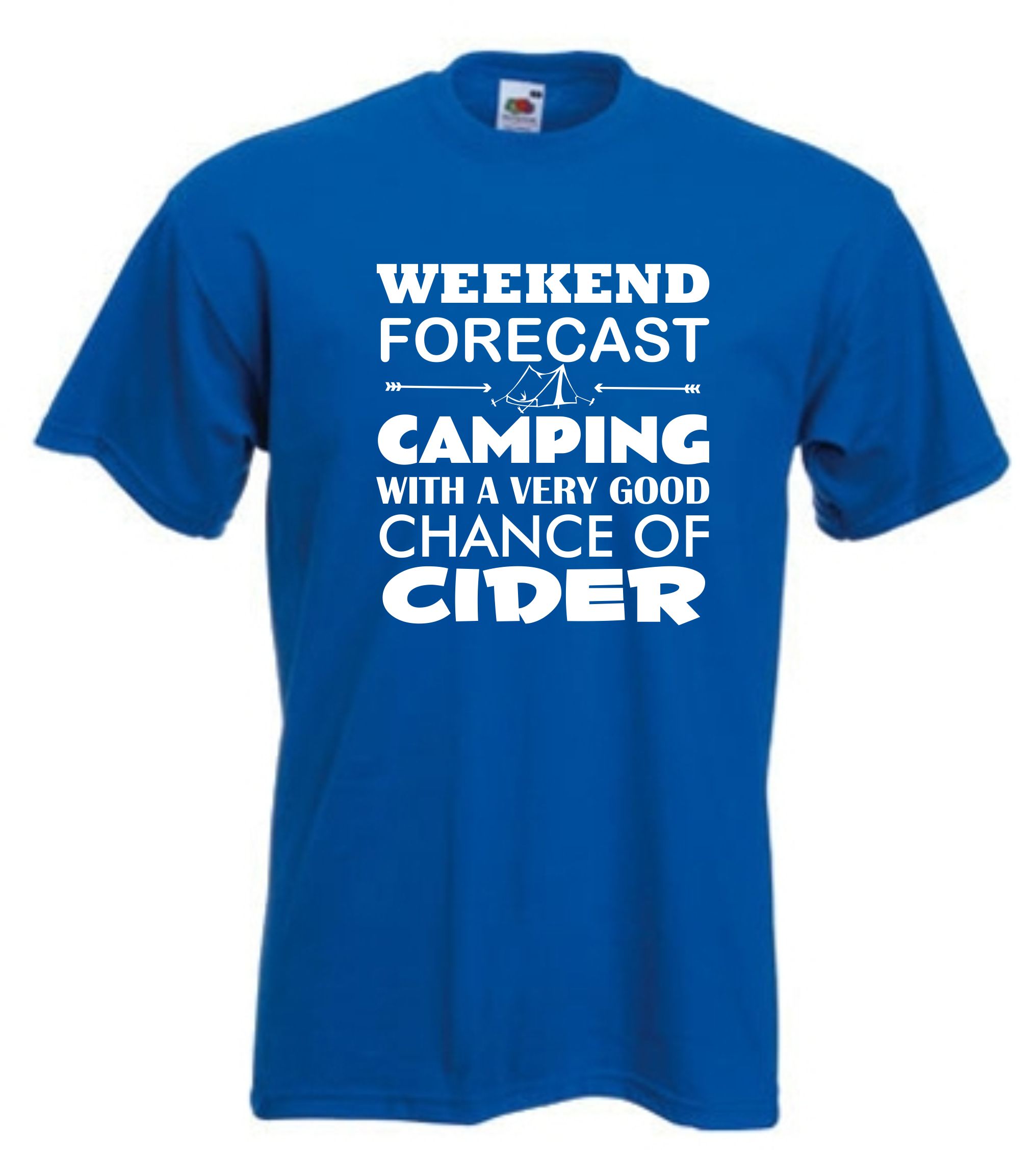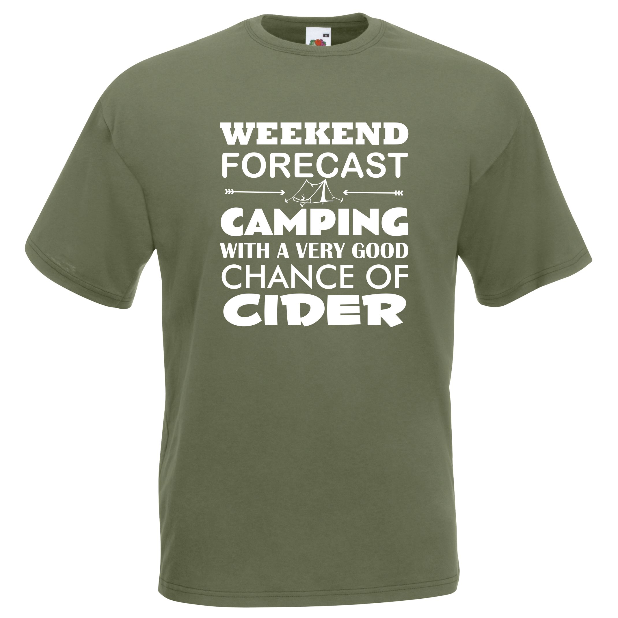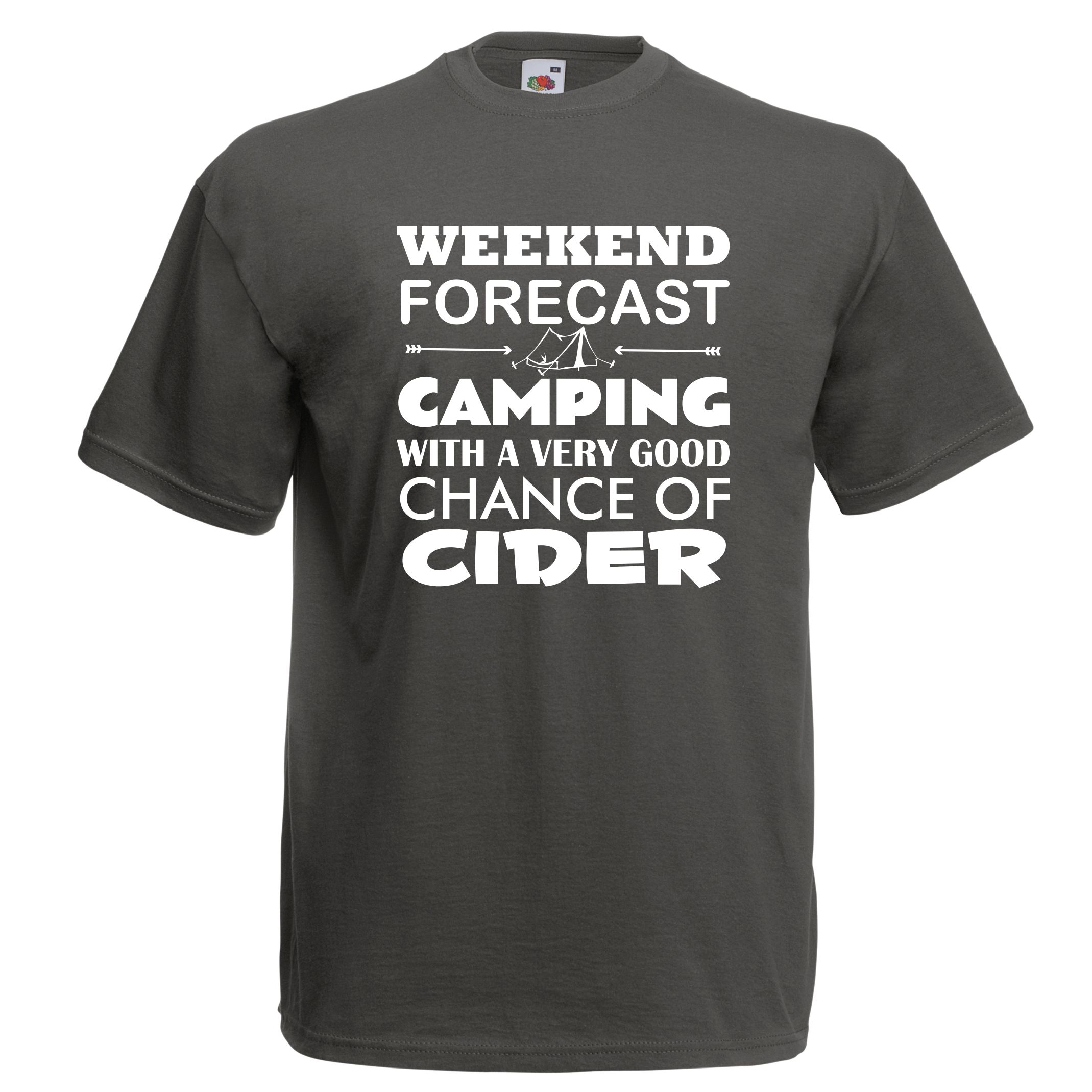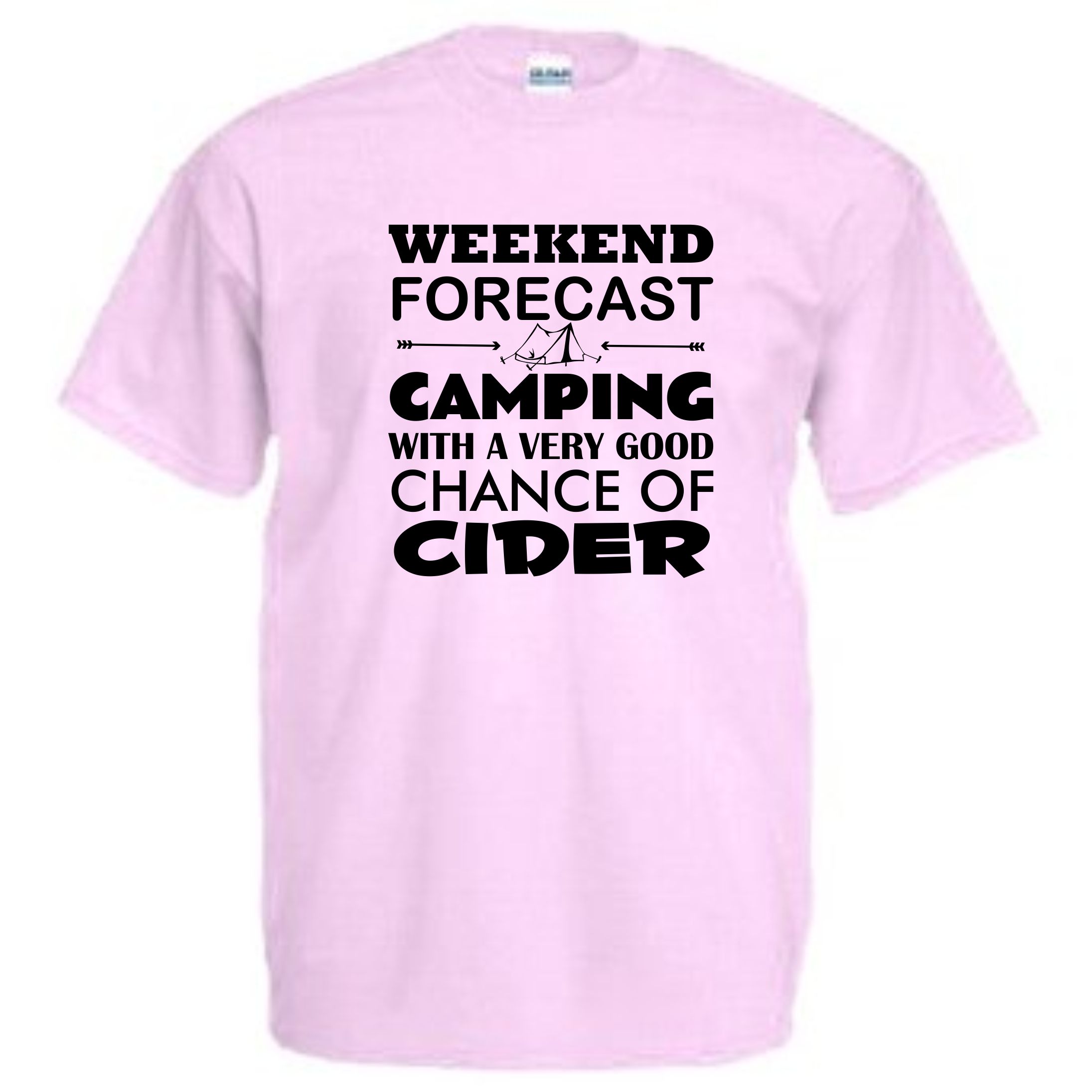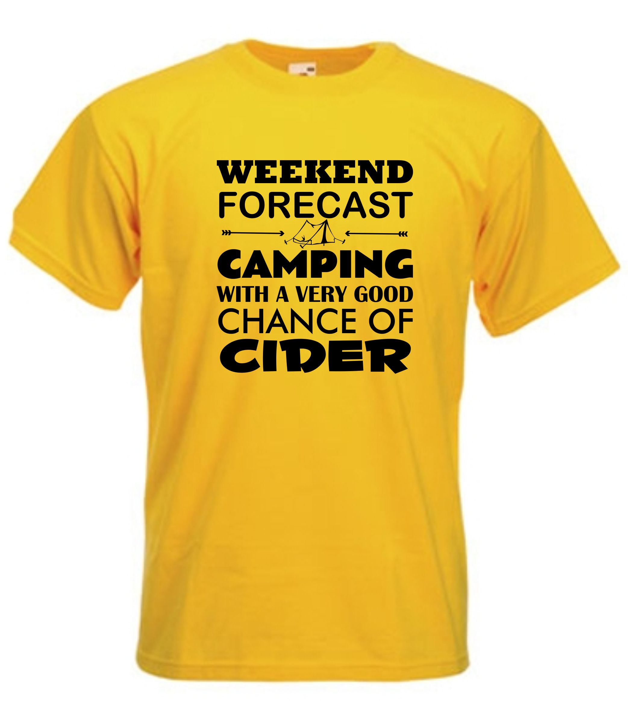 This is our Weekend Forecast – camping with a very good chance of cider t-shirt that would be a great gift for any camping enthusiast.