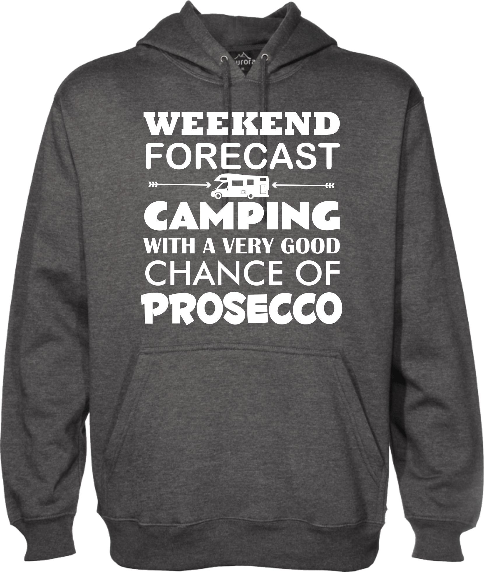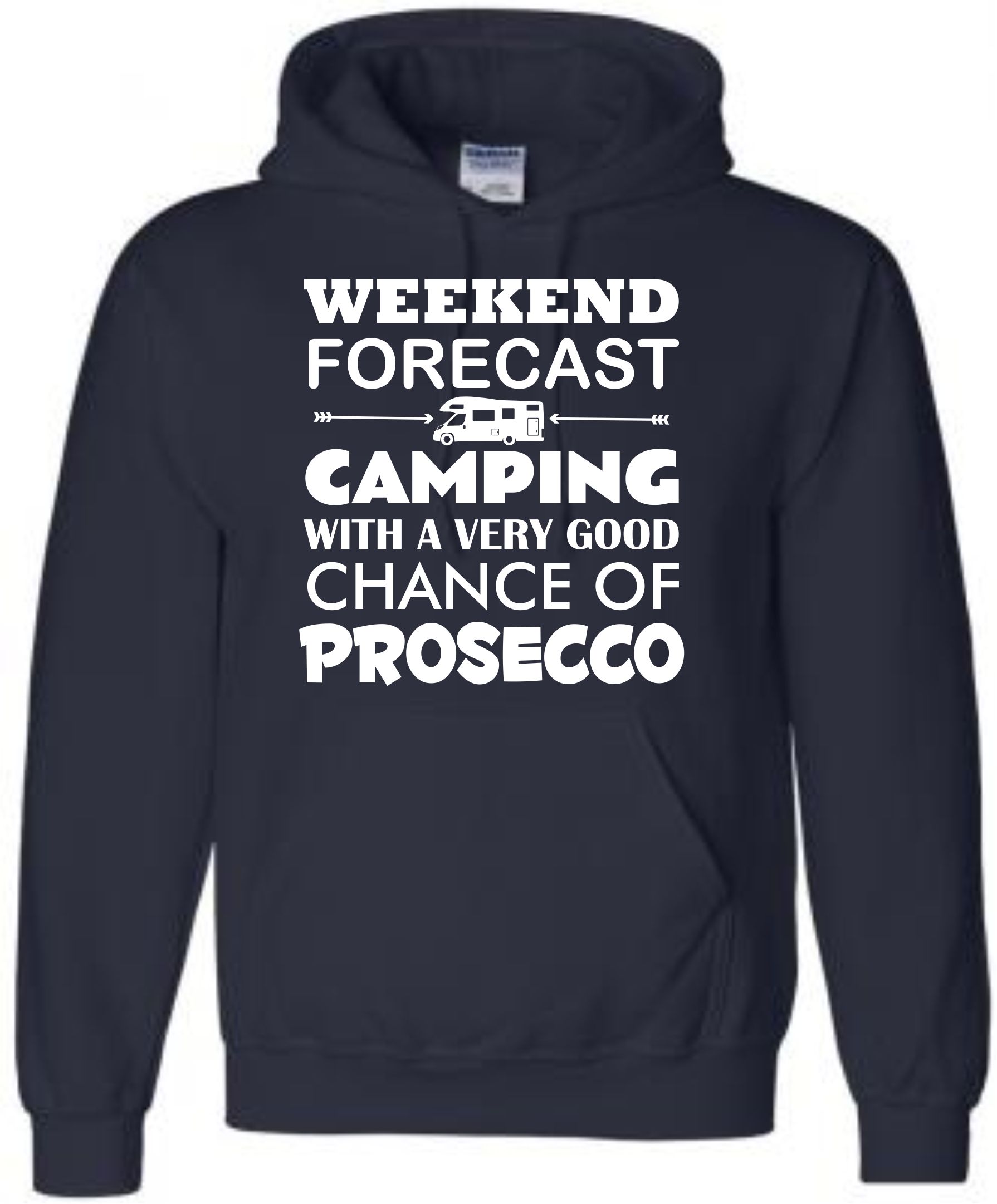 This is our pre-designed Motorhome Hoody – Weekend Forecast, Camping With a Very Good Chance of Prosecco Hoodie which is just one of our fantastic designs professionally printed onto a high quality hoodie.